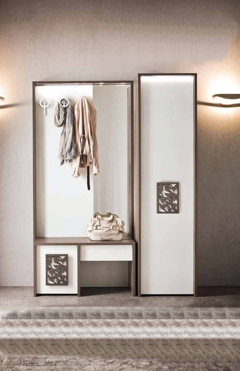 Entrance hall (set for the hallway) Fusion from the Italian manufacturer Maronese. Set consists of a tall Cabinet and coat rack with mirror, three hooks and a cupboard. The model is made in a modern style, the frame is made of wood. Decorative pattern makes a set of delicate and elegant and it will perfectly complement the interior of Your hallway.