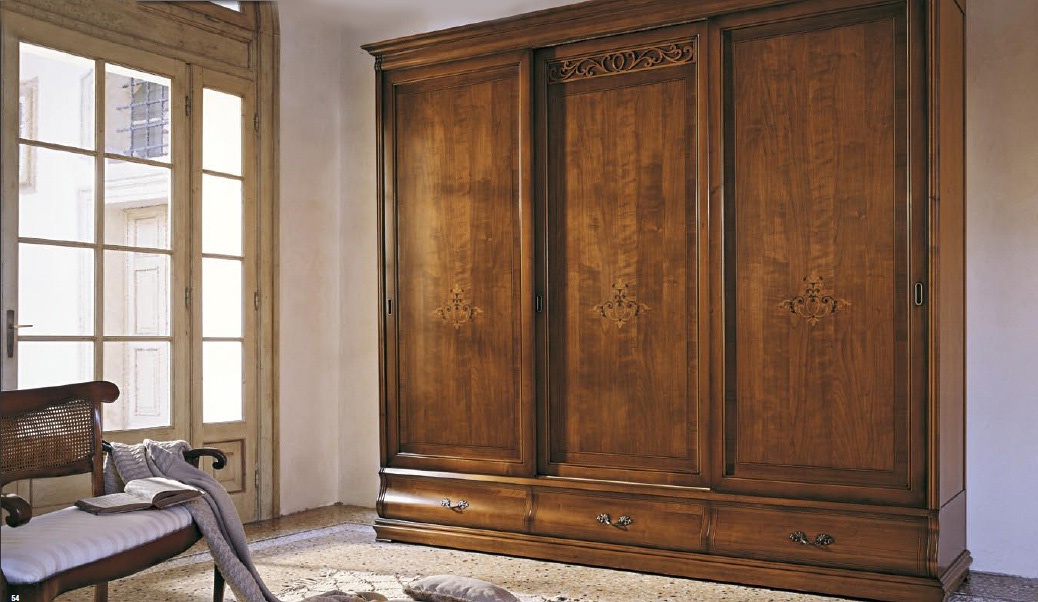 Cabinet Fenice from the Italian manufacturer Arve Style. The product on the base, with 3 sliding doors, fitted 3 drawers with subtle metal hardware. Frame, base - solid wood, finish - veneer with a choice from the range. Decor are exquisite carving handmade, exquisite inlay. The following authentic classical principles, the inspiration of French charm and modern visualization - all this ensures the relevance of models for stylish modern interior.