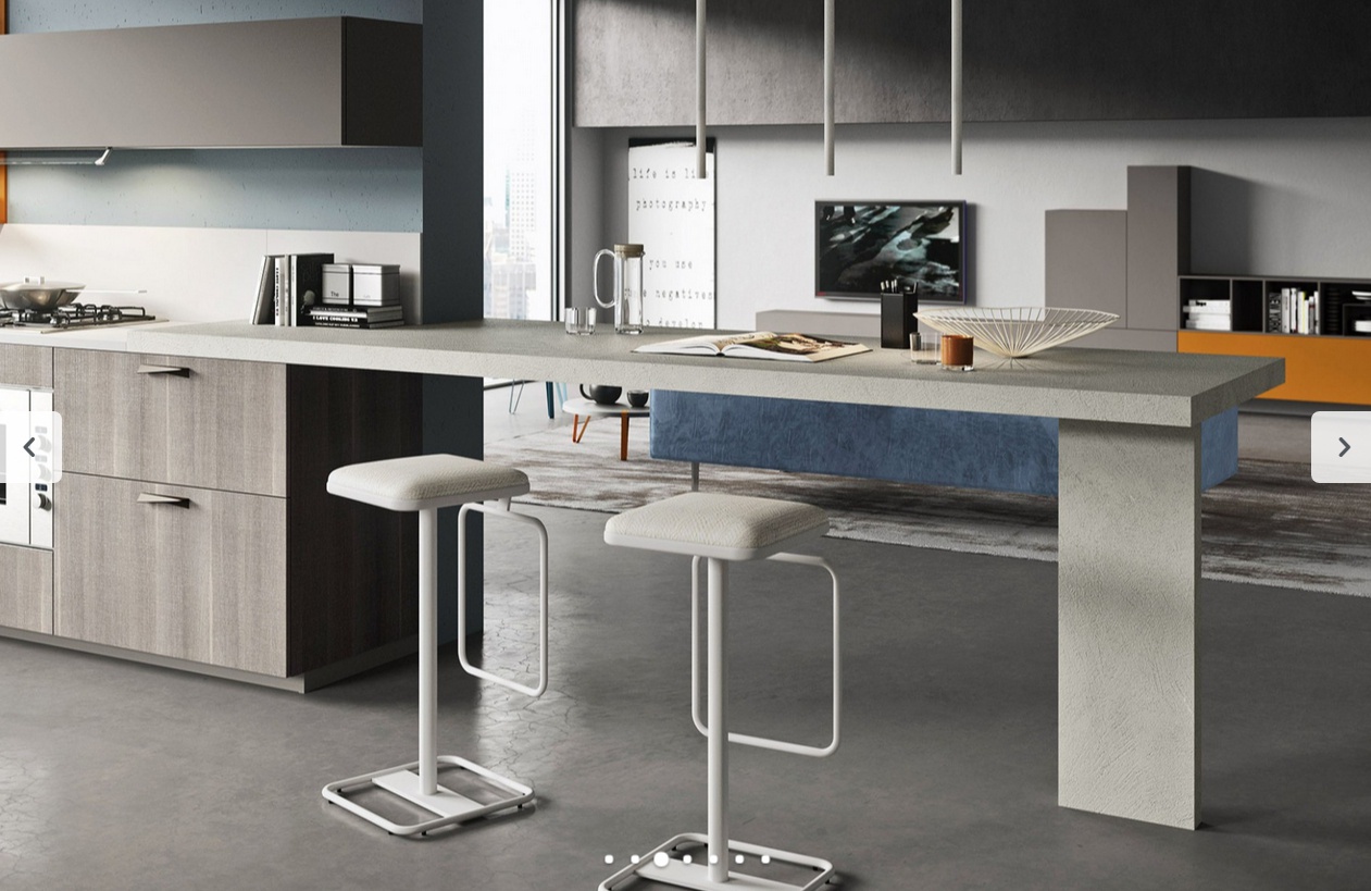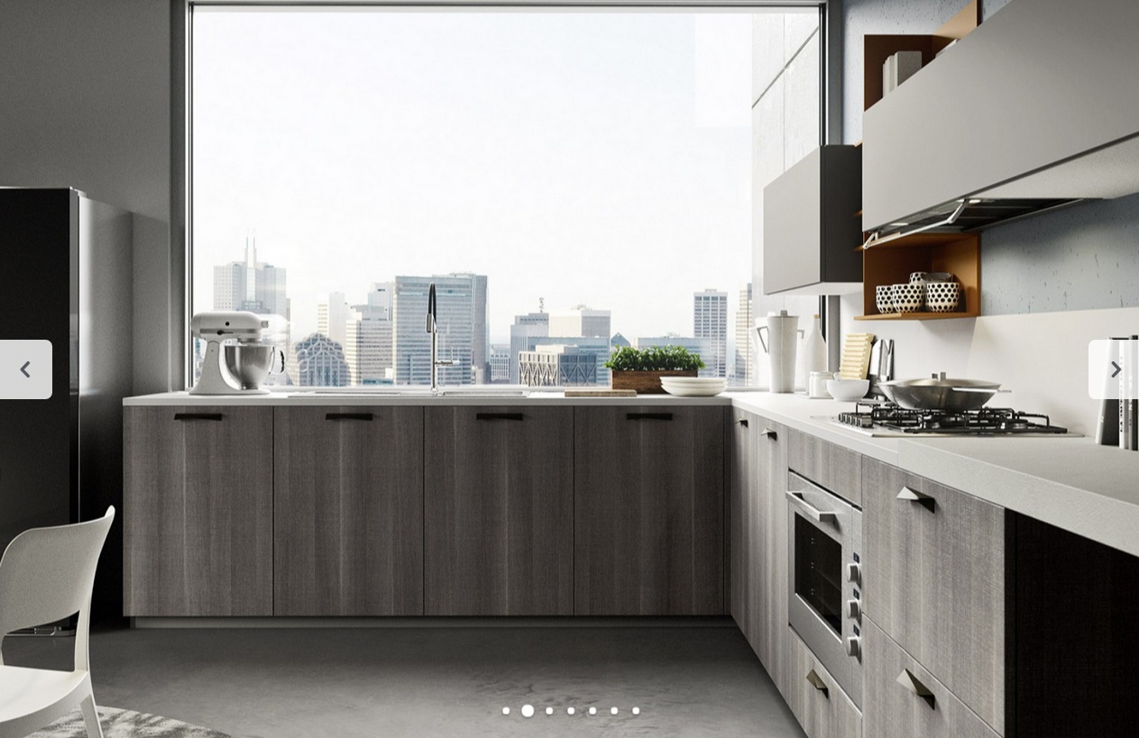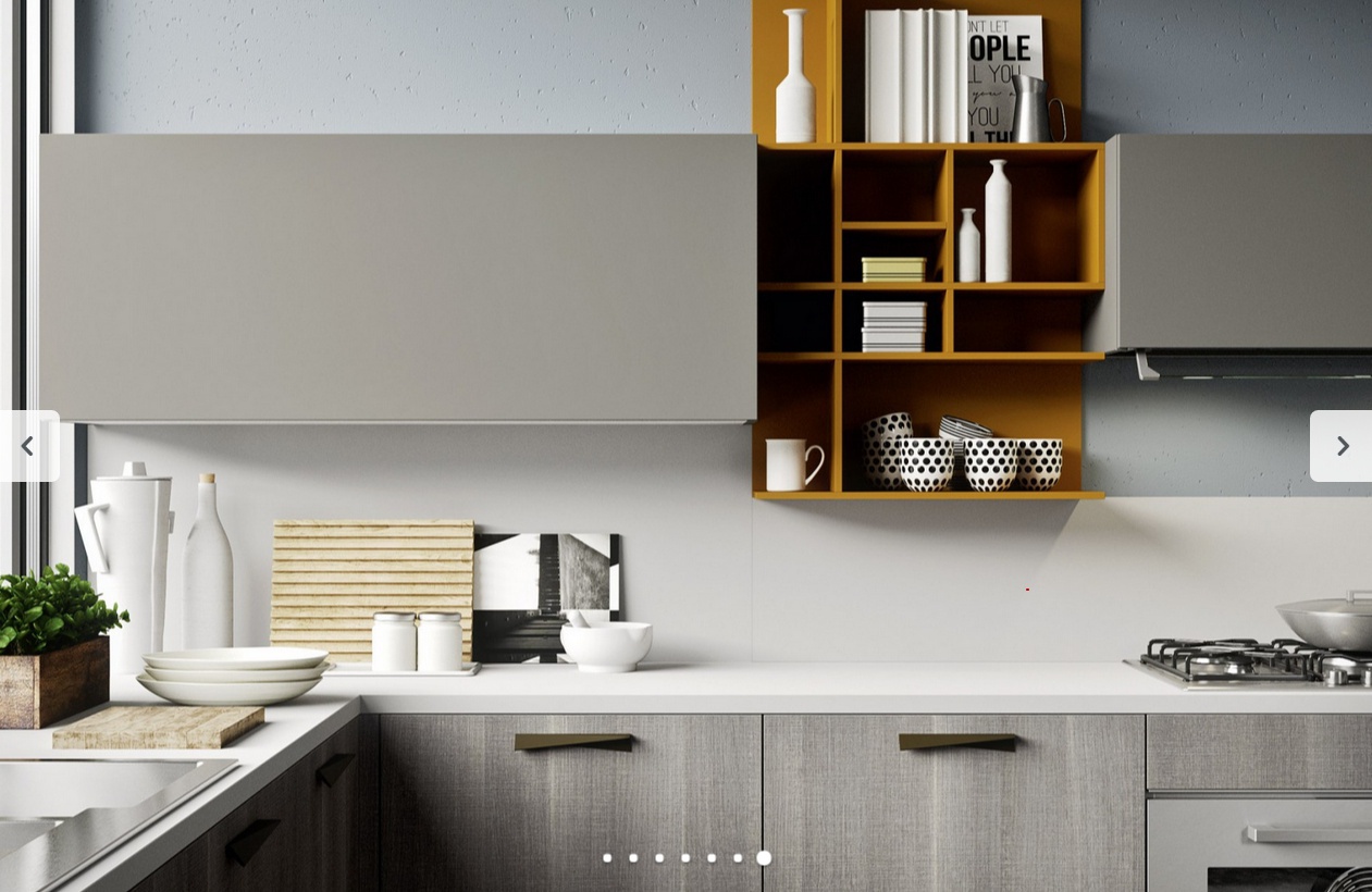 Kitchen (kitchen set) K 3 One Handle from the Italian manufacturer Siloma in a modern style. Ergonomic angled composition. Feature is the transition table tops in the bar, as well as a small number of cabinets. Wide choice of size and color number back in stock