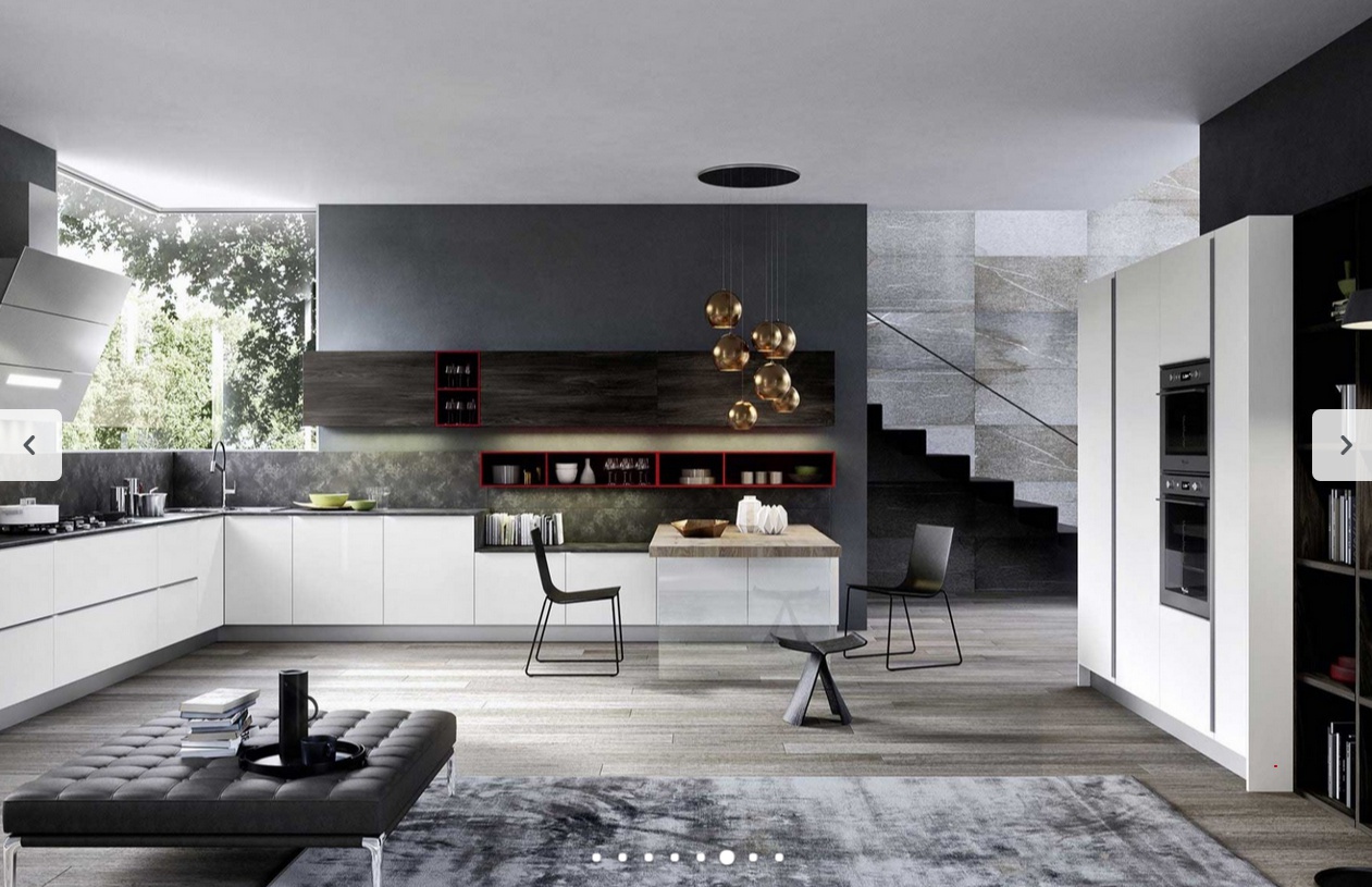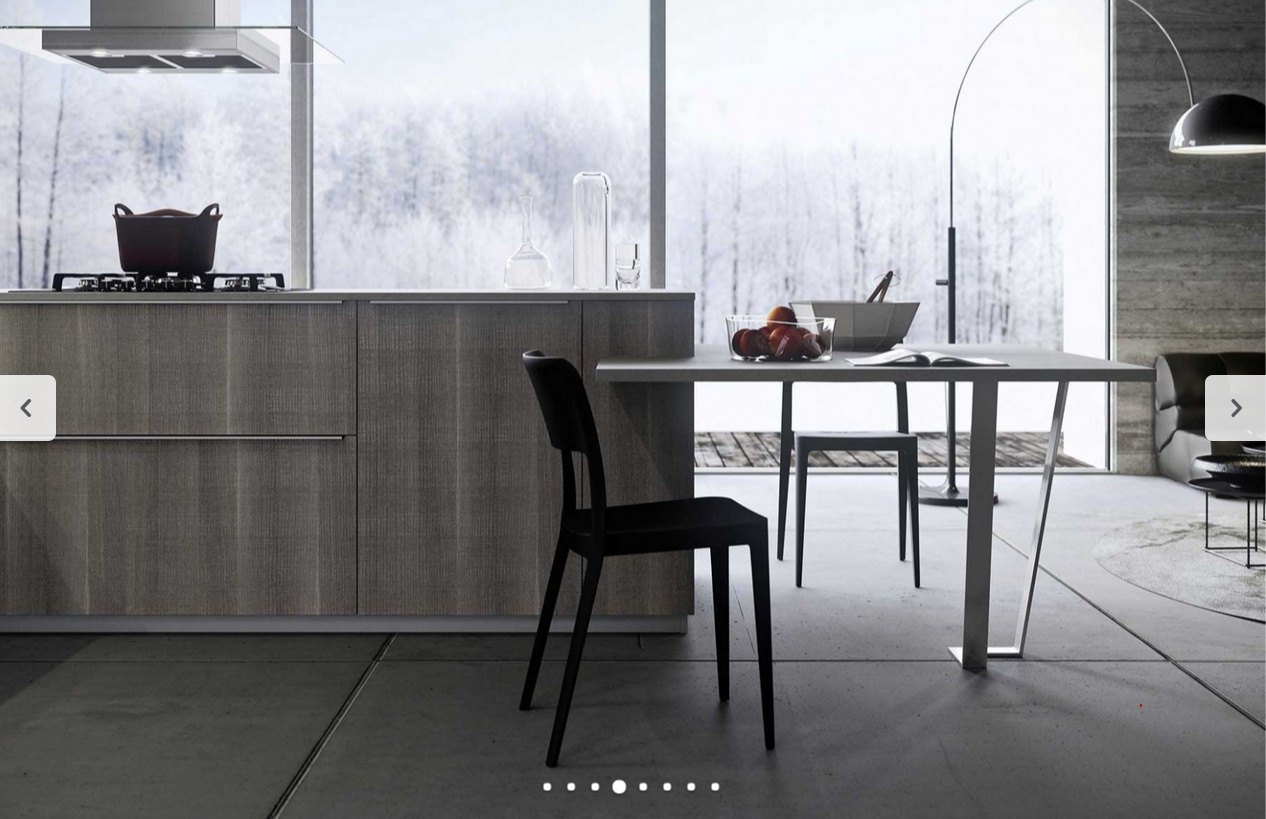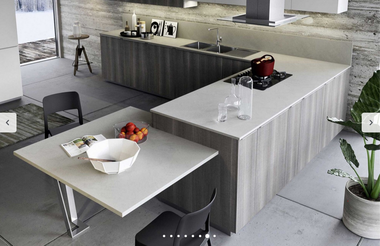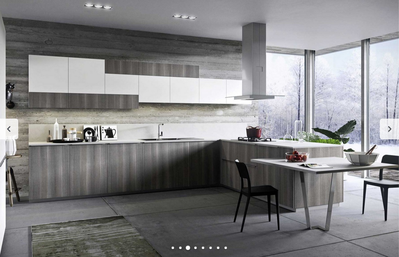 Kitchen (kitchen set) One K 2 Linear from the Italian manufacturer Siloma in a modern style. Spacious corner composition with integrated dining table. The feature of this model is a thin handle built into the facade. Wide choice of size and color number in the catalog manufac