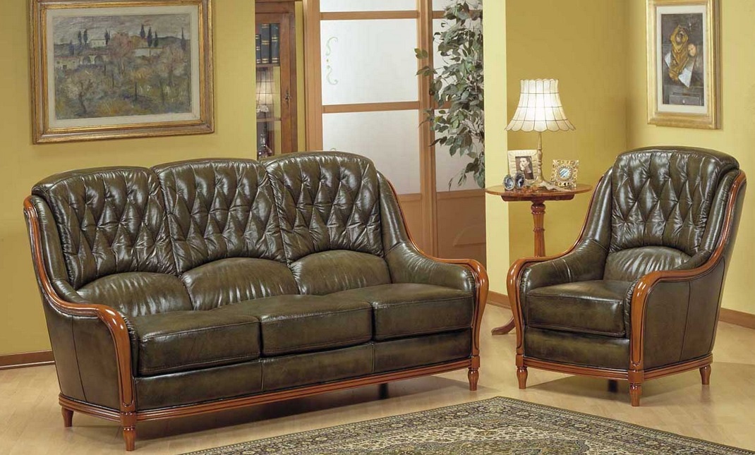 Mozart three seater sofa from Italian manufacturer SAT Export. The frame is natural wood. Upholstery - leather. Filler foam. Decorative elements thread of manual work. The model will perfectly complement the modern interior living room. Colours in stock.