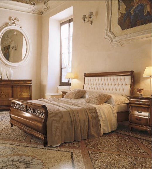 Bed with upholstered headboard and carved footboard Fenice, Arve Style
