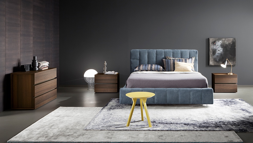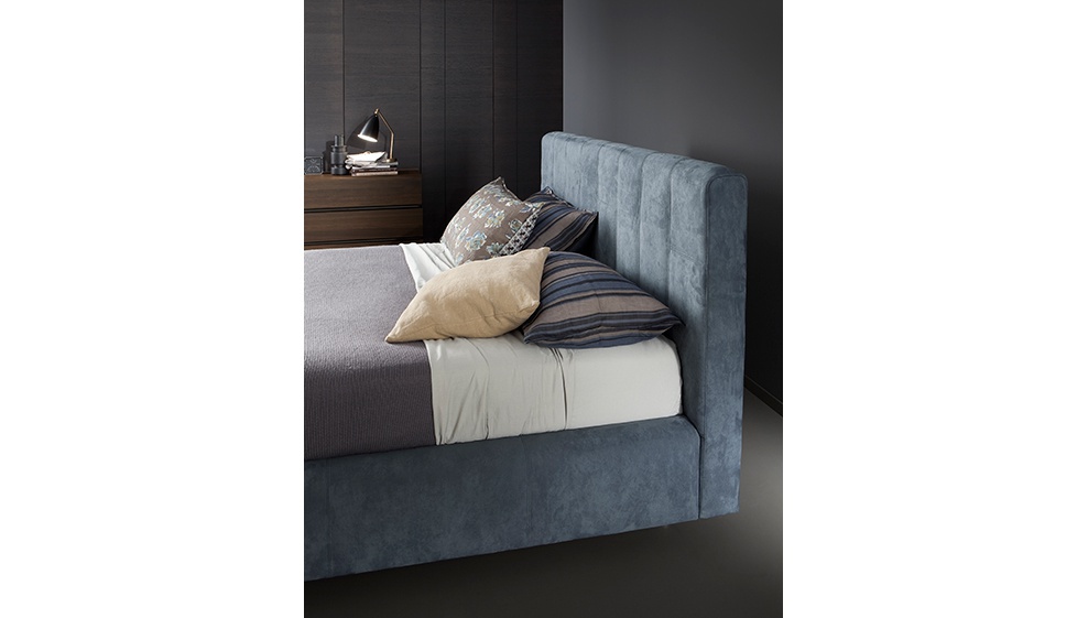 Double bed Flat Essence from Italian furniture manufacturer Rossetto Armobil. The model is made in modern style. Essence Flat bed with a hidden wooden frame, fully upholstered in fabric. Also, the manufacturer offers other options for the upholstery on the client's choice, such as genuine leather or high quality leatherette. The model is available in two sizes: for mattress of 160x200cm and 180x200cm