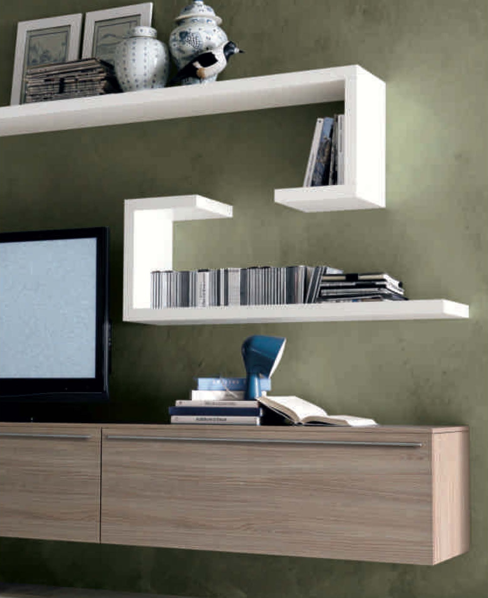 Modular system Seta from the Italian manufacturer Maronese. The model is made of wood. System modern d?cor consists of shelves of cabinets, long cabinets. Colours in stock. Beautiful composition Seta will delight You with its versatility and compactness.