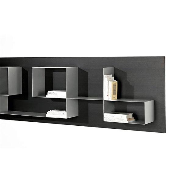 Square shelf from the Italian manufacturer features tisettanta furnishings. The frame shelves are made of aluminum. The back panel is made from solid wood. The color of this model shelf, white and gray.