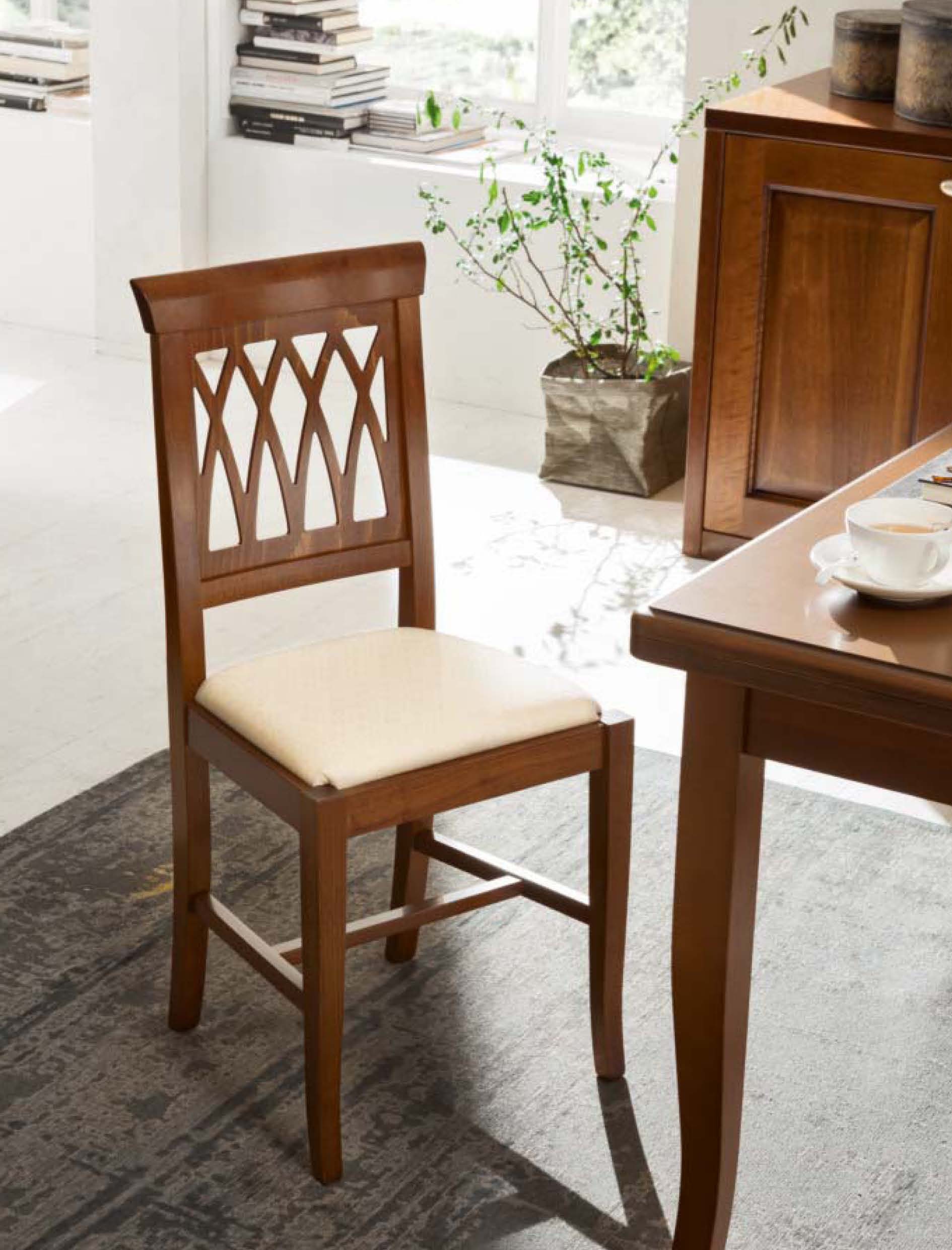 Asolana chair from the Italian manufacturer Maronese. The model is made in classic style, wooden frame, upholstered in textile or leather. The color in the catalog. Carved backrest makes the chair elegant and sophisticated, but soft and comfortable seat adds to its comfort.
