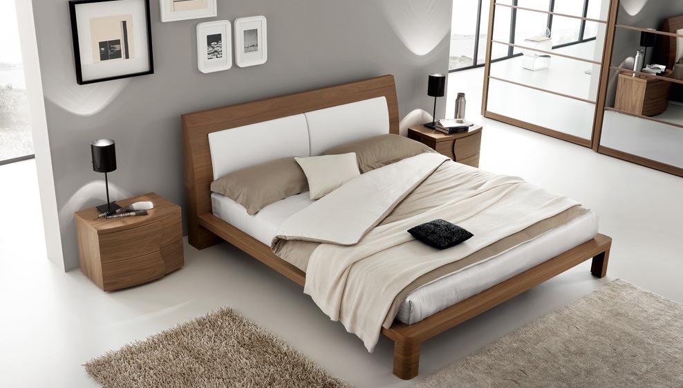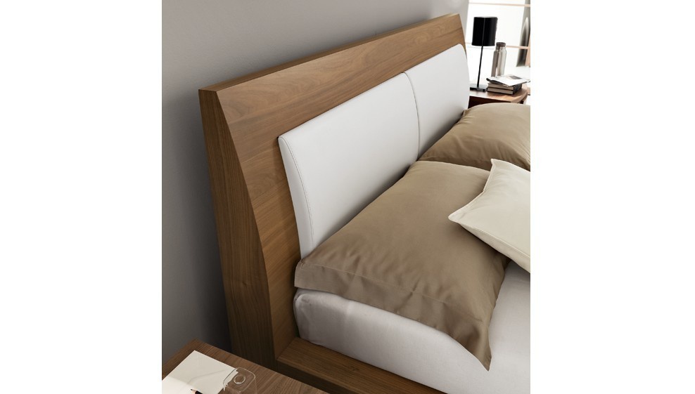 Double bed Versus from Italian furniture manufacturer Rossetto Armobil on a wooden frame. The quality of finishes , the manufacturer offers several color options matte lacquer, walnut veneer and oak veneer. Decorative pillows on the Central part of the headboard, upholstered in faux leather. The model is available in two sizes: for mattress of 160x200cm and 180x200cm.
