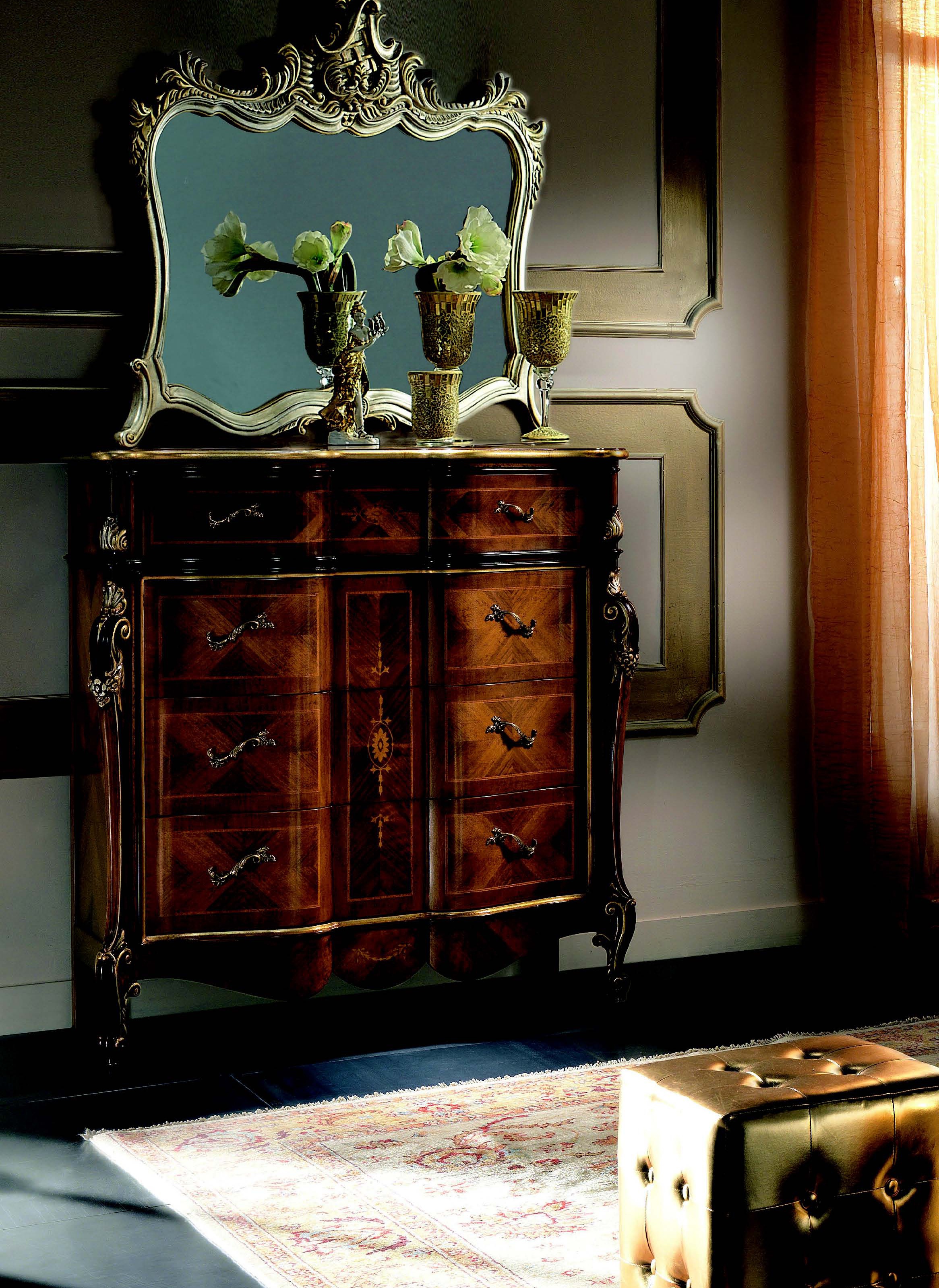 frame, base: solid wood finish: walnut accessories: metal coating: lacquered decor: carved decor: inlay |