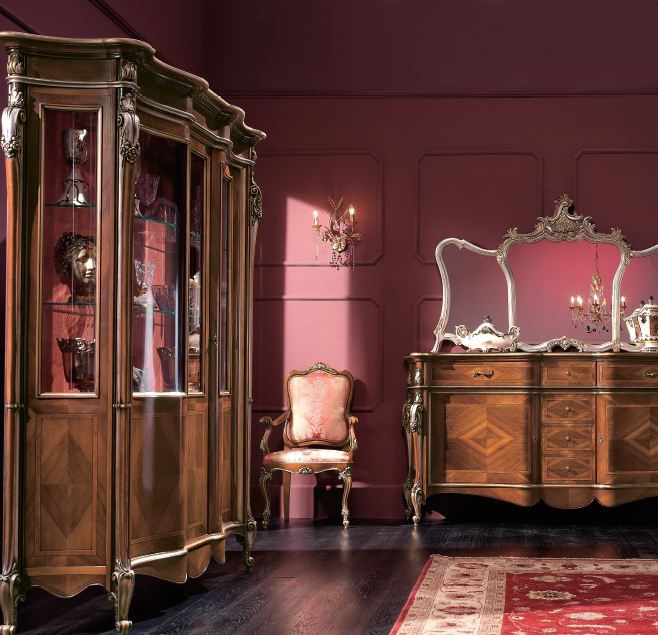 Set for dining room decoration in walnut Luigi XXI, Arve Style