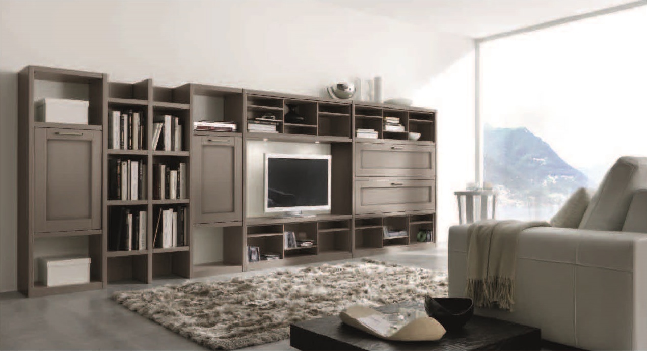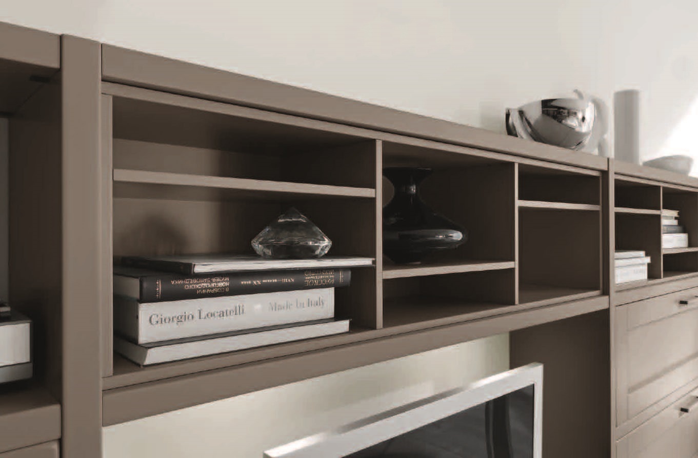 The modular system of the Piave from the Italian manufacturer Maronese. The sculpture consists of open and closed shelves, plenty of open compartments, lockers and a large compartment for TV. Classical system made of wood. Colours in stock. If You love to read and have many favorite things, You'd like to show everyone, Piave is a modular system crafted for You.