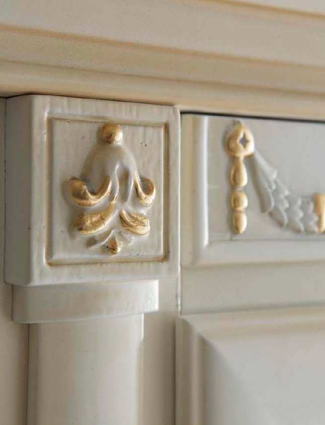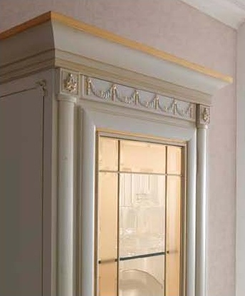 Showcase Milano from the Italian manufacturer Maronese. Showcase is made in the classic style. The frame is made of wood. The model has two glass shelves and three wooden shelves, rear wall mirror and internal lighting. There is right-sided and left-sided model. A beautiful pattern adorns the door, and decorative gilding gives the piece a luxurious look.