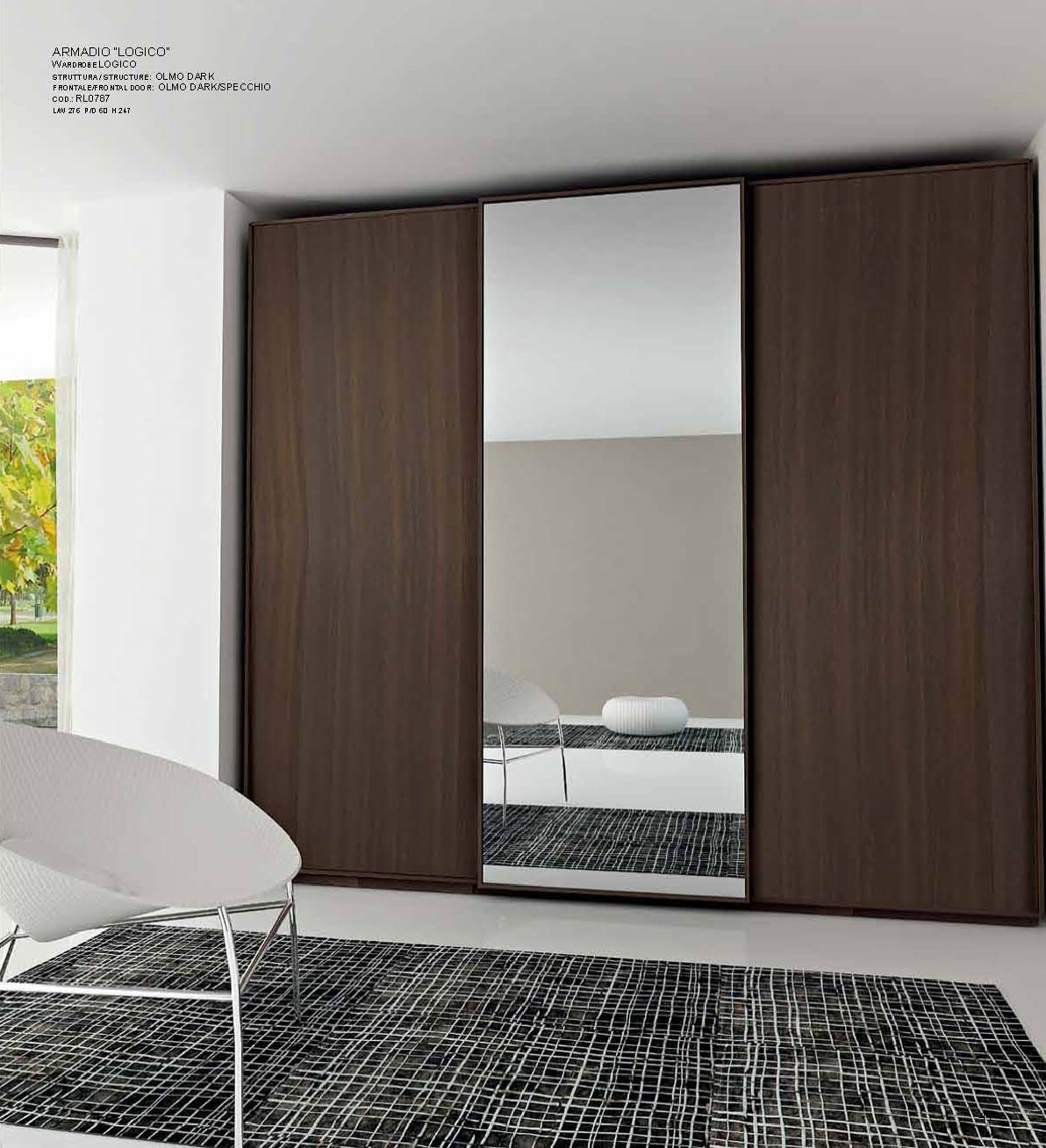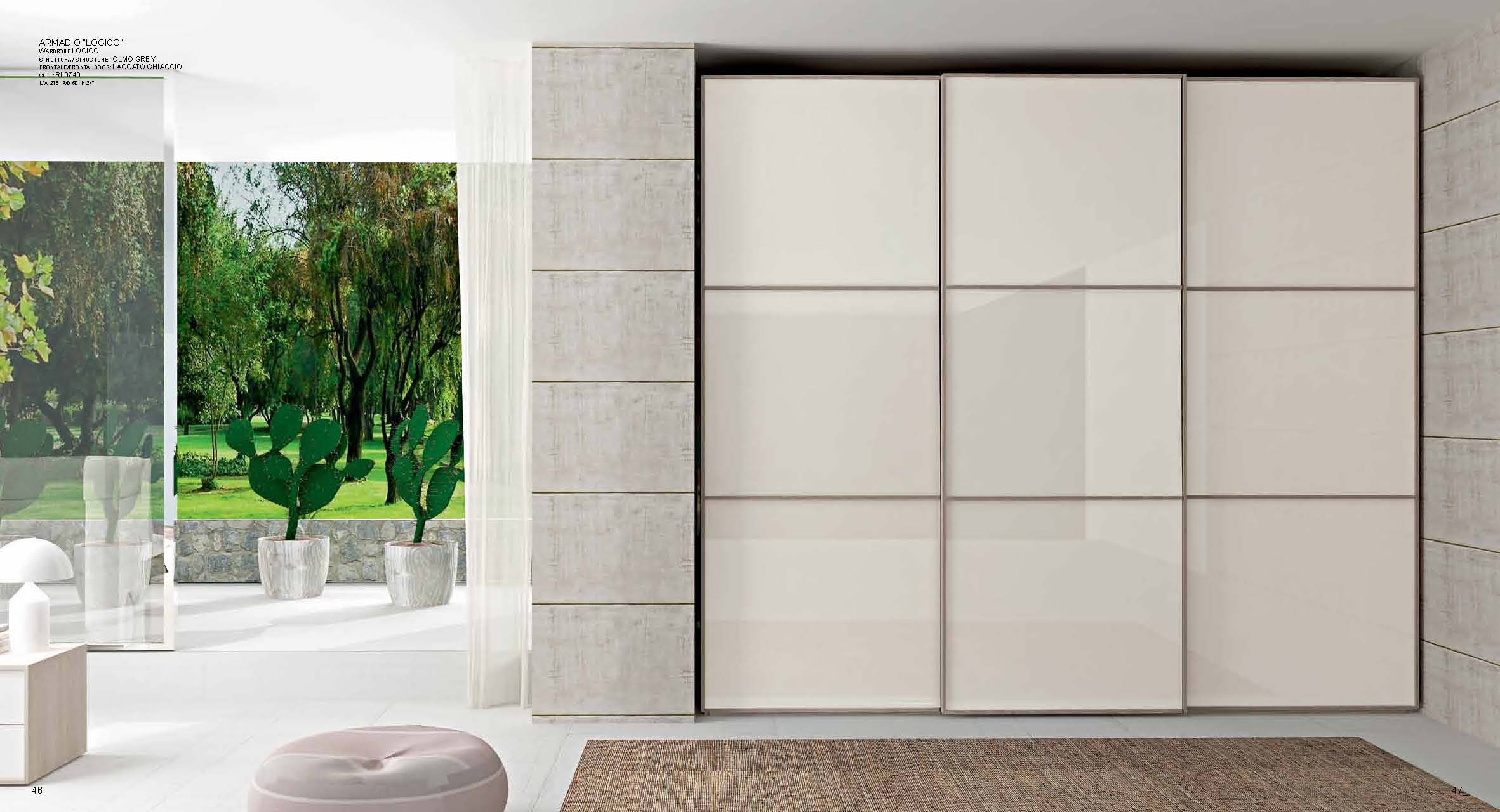 Cabinet Logico Scorevole from the Italian manufacturer Imab Group in a modern style. The model with three sliding doors in a glossy finish and barrier rails. It is also possible to select the center of the fold mirror. A wide variety of color range in stock.