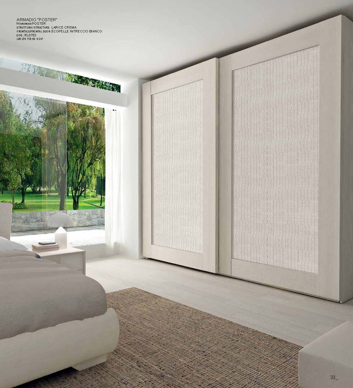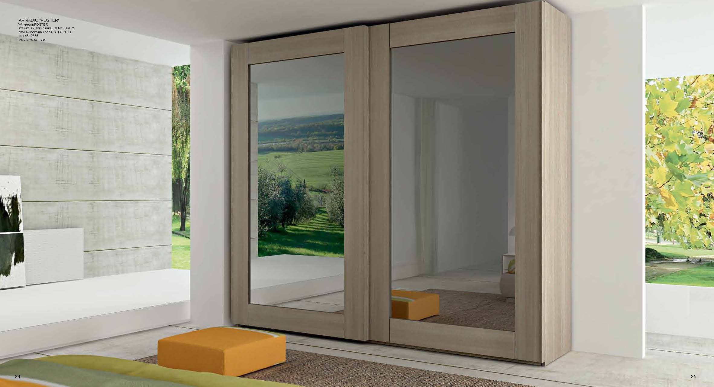 Wardrobe Poster from the Italian manufacturer Imab Group in a modern style. Double wardrobe with sliding doors. The doors are made of large frames and original insert. As an insert can serve as a mirror, or a combined version. Colors of finishes of Your choice in stock.