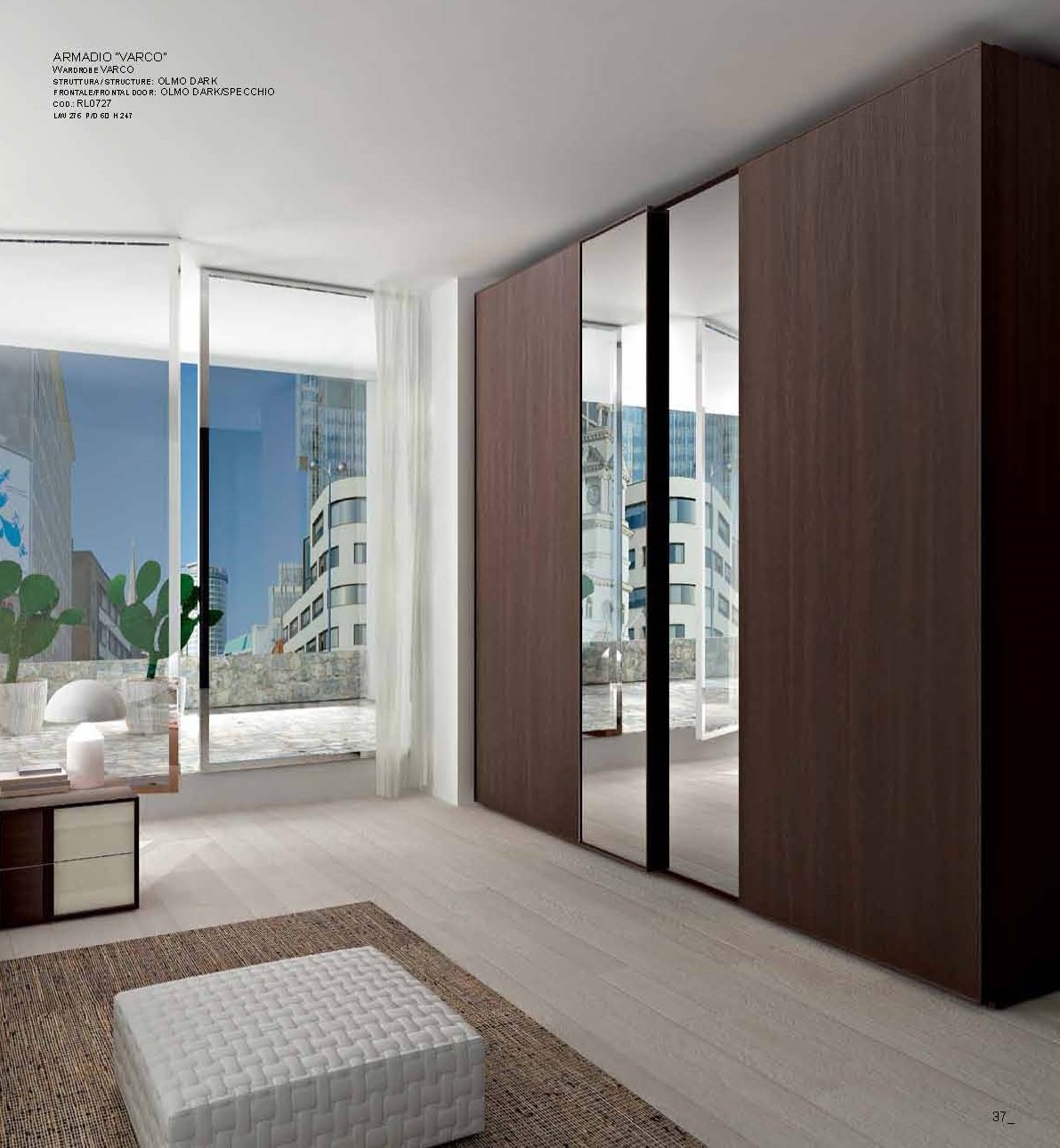 Cabinet Varco from the Italian manufacturer Imab Group in a modern style. Sliding doors feature a mirrored insert. This wardrobe will fit perfectly in any room, both in the bedroom and in the hallway. The doors are equipped with smooth running, the internal filling is most convenient to use.