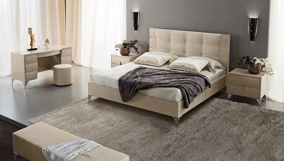 Double bed Dune , a collection of Luxury, Italian furniture manufacturer Rossetto Armobil on a wooden frame. The quality of finishes , the manufacturer offers several color options gloss varnish . A special feature is the original performance of the headboard and chrome legs in the style of art Deco. There are various options of an upholstery bed headboard. The headboard is decorated with stitch Capito. Bed available with container for the linen in two sizes: for mattress of 160x200cm and 180x200cm