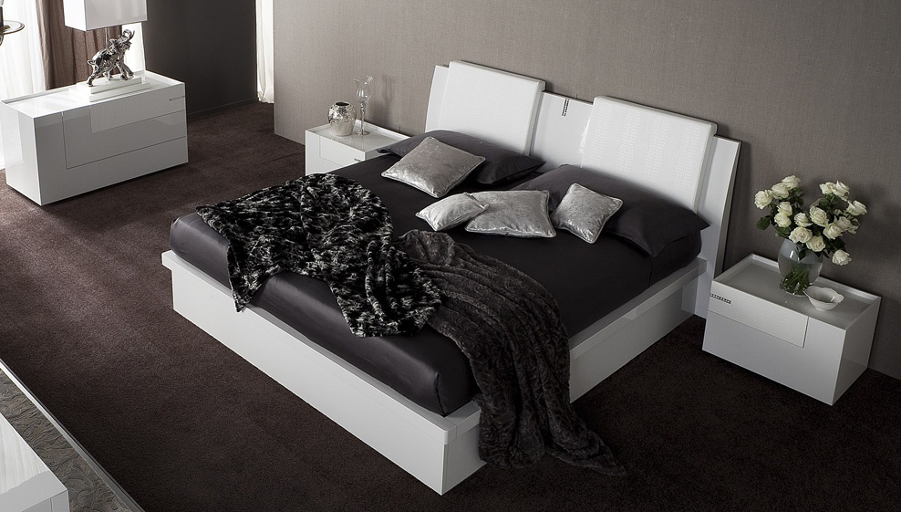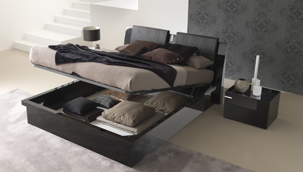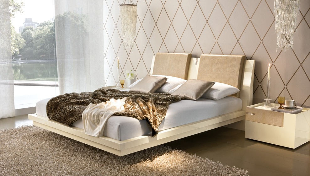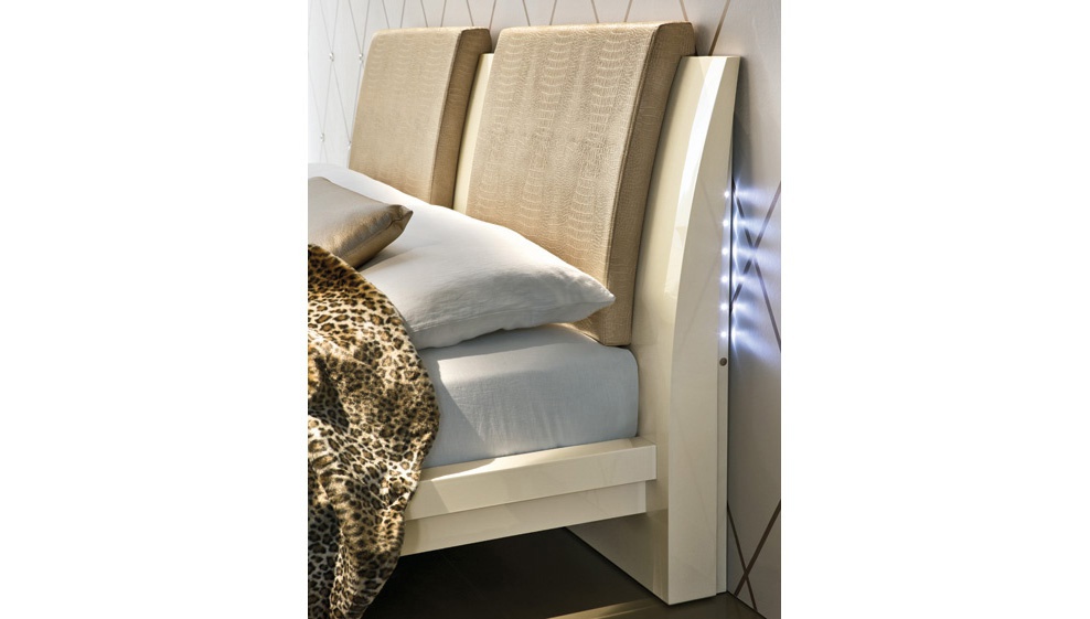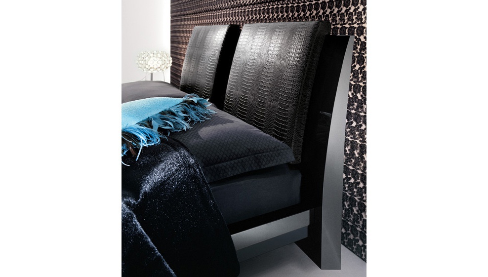 Double bed Diamond collection of Luxury, Italian furniture manufacturer Rossetto Armobil on a wooden frame .The quality of finishes, the manufacturer offers several color options gloss varnish. The headboard is decorated with patch cushions that are upholstered in faux leather embossed crocodile. At the request of the client, the model can be supplemented with Led illumination insert and STRASS® Swarovski® Crystal. Bed available with container for the linen in two sizes: for mattress of 160x200cm and 180x200cm