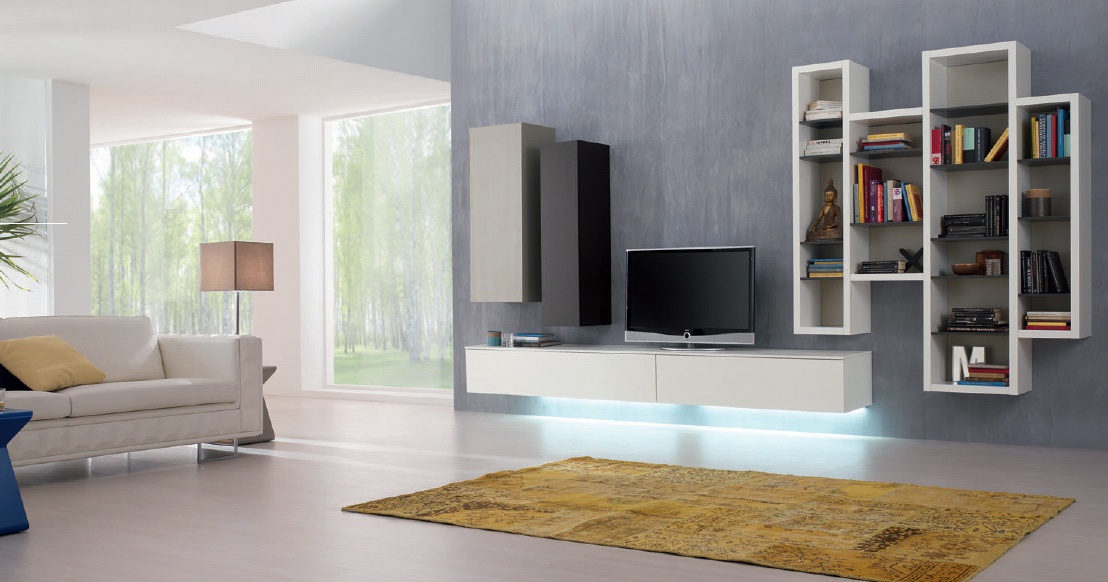 Stylish, dynamic wall presents for the living room or teen room in a modern style. Casing finish and fronts in veneer or lacquer from the company portfolio. The shelf and rear wall modules in multi-colored varnish. The furniture is made to order. Equipment modular system and the combination of colours and finishes according to the customer.