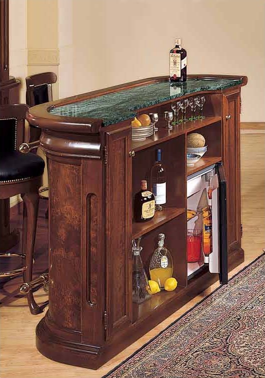 Bar (Suite bar) from the Italian manufacturer Mirandola Export. The model is made in classic style. Frame - wood. Set consists of a bar rack, bar counter and bar stools. The Cabinet has shelves, drawers and mirrored back wall. The bar countertop is made of green or pink marble to choose from. Beautiful set fits perfectly into any interior.
