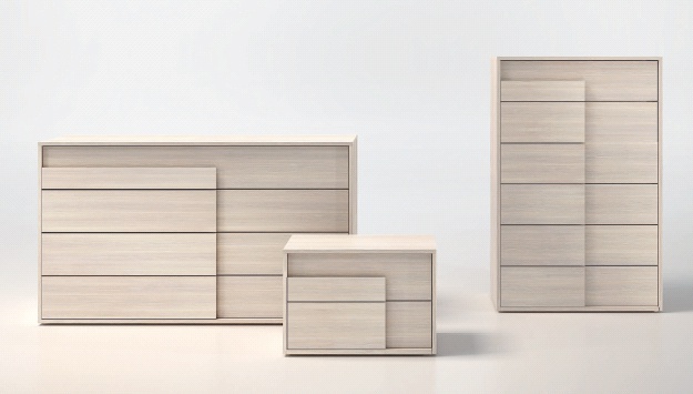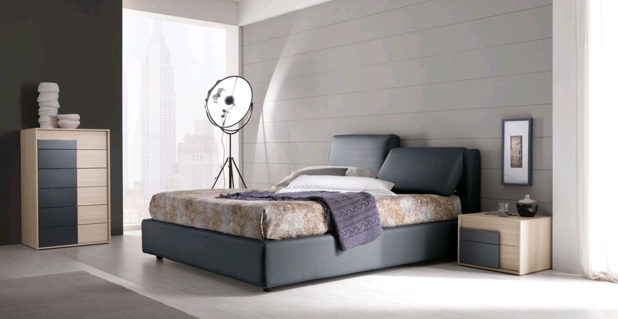 Bed with adjustable cushions made of MDF with leatherette upholstery. Options in fabric or leather upholstery in different categories. Dressers and cabinets from MDF.
