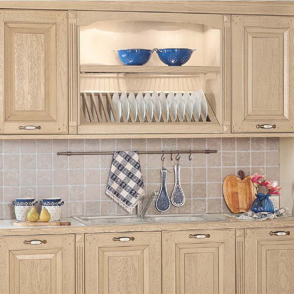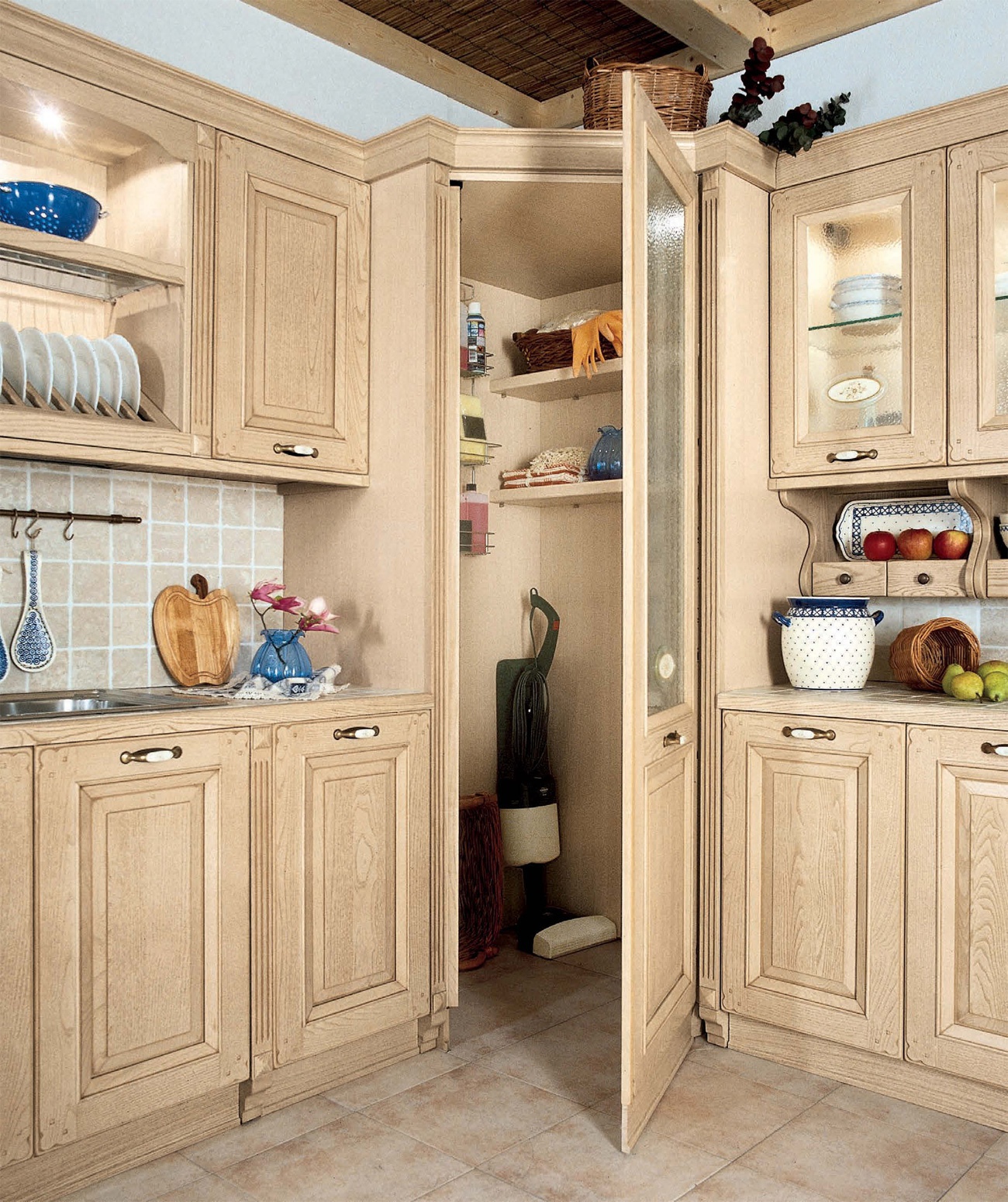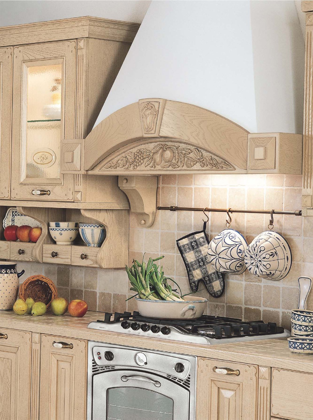 Kitchen'epoca comp.4 from the Italian manufacturer Ar-Tre. The structure of the kitchen made of waterproof wood. Fronts made of solid oak in the finish "Decape" beige tones with visible structure and glass with the effect of drizzle, handles in antique brass with ceramic insert. Countertop made of ceramic tile and wood. Colors to choose from manufacturer's catalogue. Built-in appliances. This composition contains: a graceful range hood with two small drawers, carved handmade, very practical and convenient corner Cabinet to store all needed items, outdoor decorative drying cupboard, functional interior fittings and filling, refined details and accessories. Rare and unique details on the facades convey the beauty and aroma of antiquity. Classical style of singing.