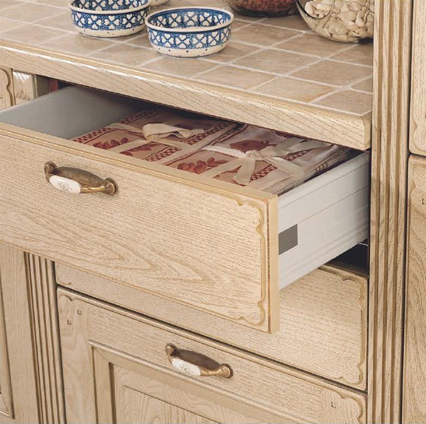 frame: wood facades, countertop: oak facades: frost on glass Studenica: ceramics handles: bronze hood: carved |