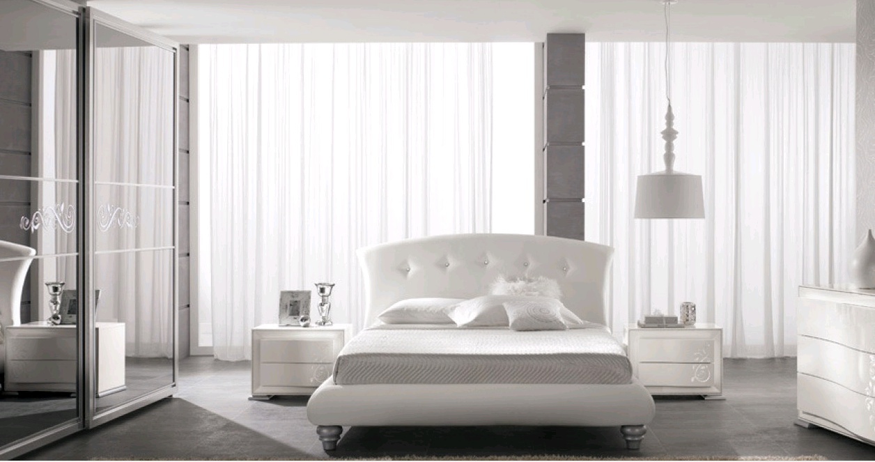 Model bedroom includes wardrobe, Charm, double c with Swarovski crystals Luna, bedside tables and a chest of drawers Charm and round wall mirror Canorie.
