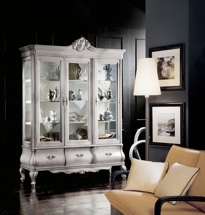 frame, base, countertop: solid wood accessories: metal showcase: glass coating: lacquered coating: patina coating: silver plated decor: carved |