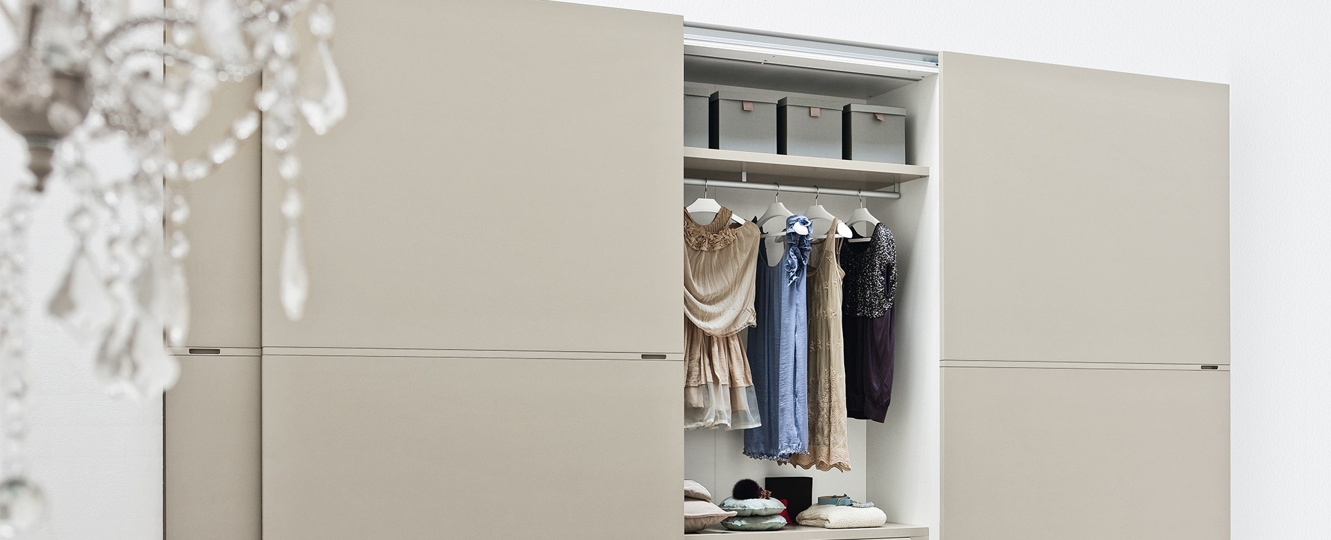 Middle wardrobe system from the Italian manufacturer Novamobili. The case is MDF wood. The surface is treated with lacquer. The perfect solution for any interior. Colours in stock.