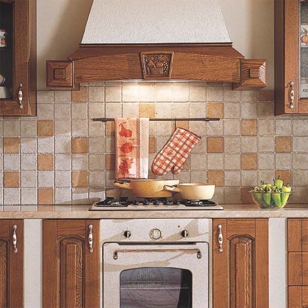 Kitchen Barchessa comp.7 from the Italian manufacturer Ar-Tre. Frame kitchen is made of waterproof wood. Fronts made of solid oak with decorative carved accents and glass doors with pattern in the form of fruit, the handle is metal with ceramic accents and decor. Countertop made of artificial stone. Colors to choose from manufacturer's catalogue. Built-in appliances. The proposed kitchen is very well expresses the traditional taste and richness in detail. A classic solution for your kitchen.