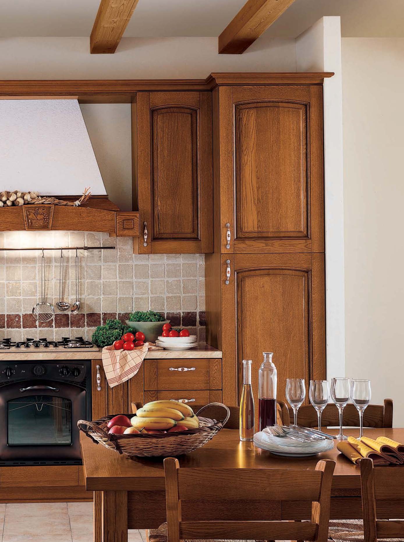 Kitchen Barchessa comp.8 from the Italian manufacturer Ar-Tre. Frame kitchen is made of waterproof wood. Fronts made of solid oak with visible structure, with decorative carved accents and glass doors with pattern, handle is metal with ceramic accents and decor. Countertop made of artificial stone. Colors to choose from manufacturer's catalogue. Your home can be unique and functional, personal and with good taste, thanks to the many ideas, parts, and accessories. Classic kitchen Barchessa is a great solution for decorating Your home.