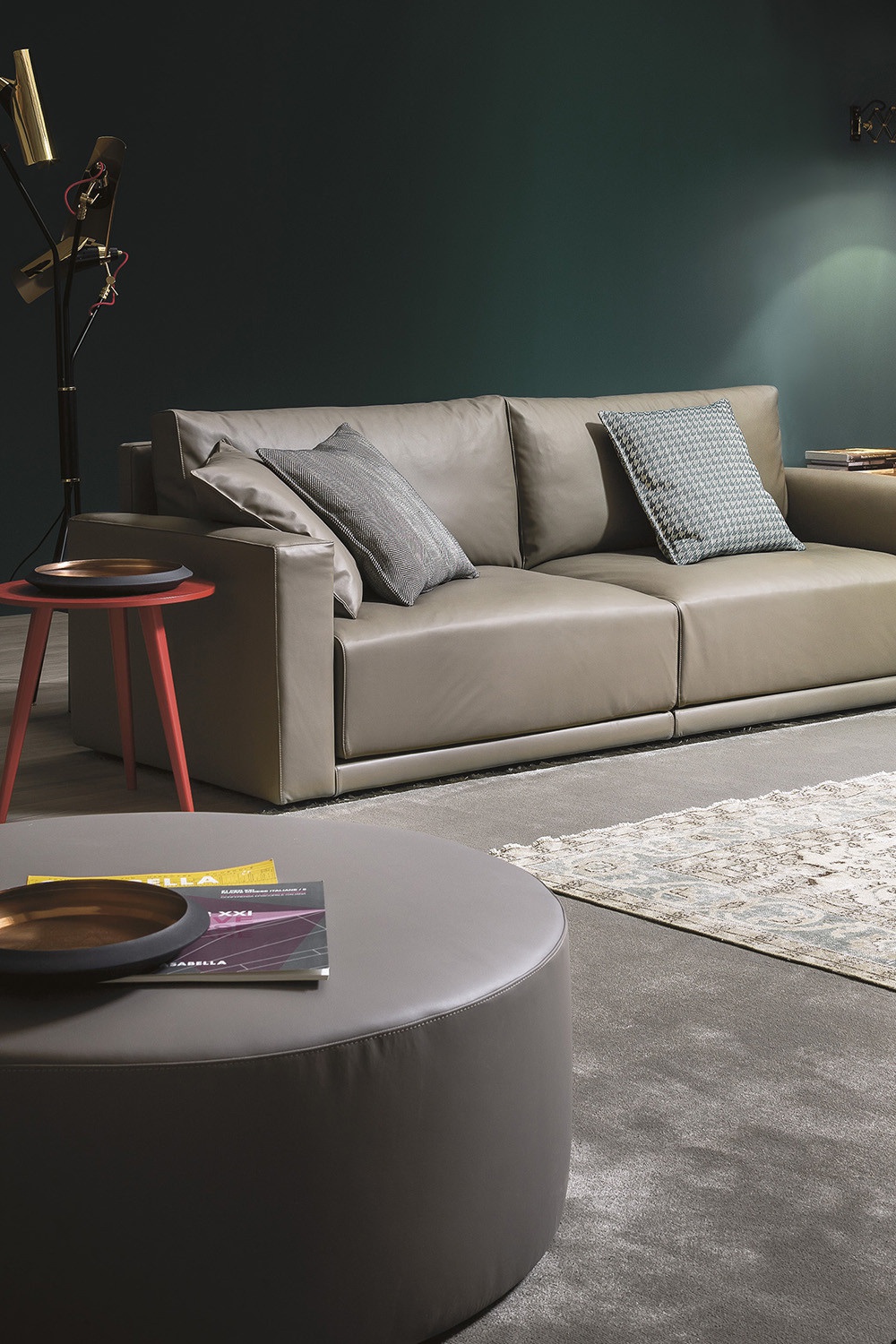Pouf with frame made of metal in a leather upholstery Tamburello, Novamobili