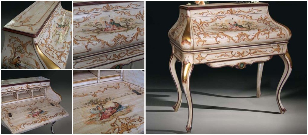 frame, base: solid wood accessories: metal decor: painted decor: inlay coating: gilding coating: lacquered the surface: antique |