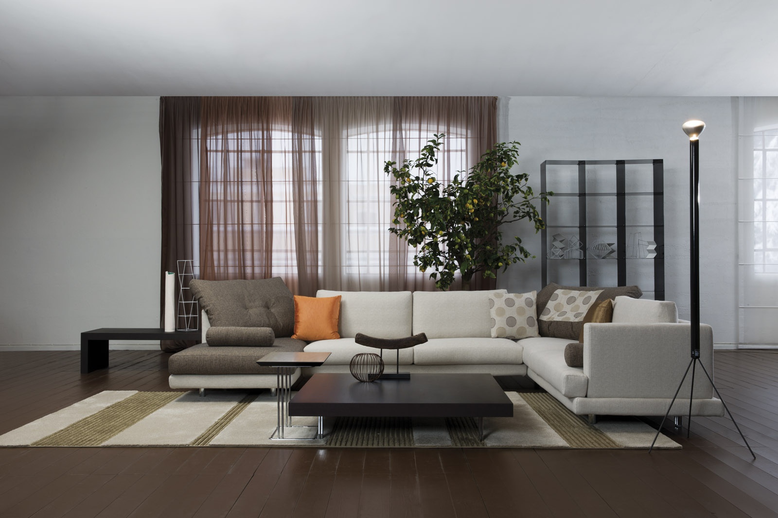 Modular sofa with chrome legs Mercury Line from the Italian manufacturer ll Loft. Model with a frame made of wood and metal. Upholstery of textile or leather. Filler - polyurethane foam. Sofa in a modern style. Colours in stock.