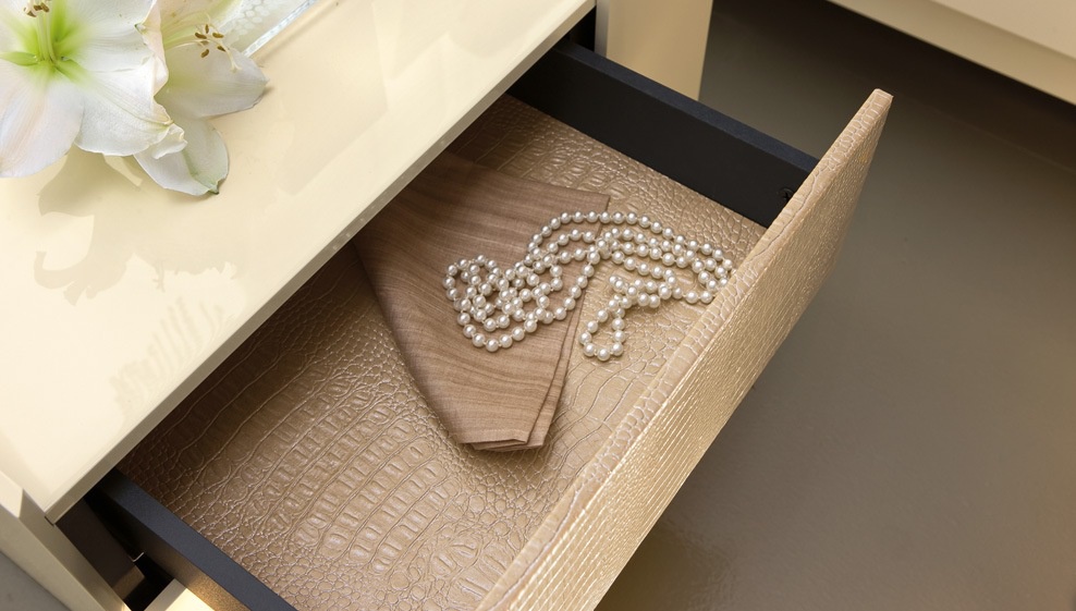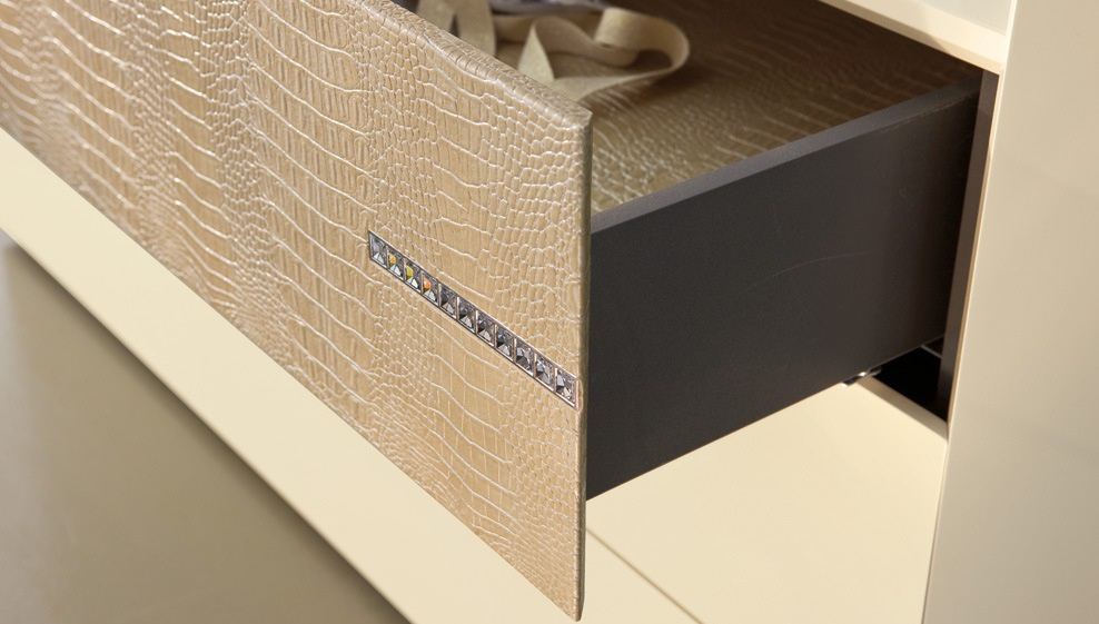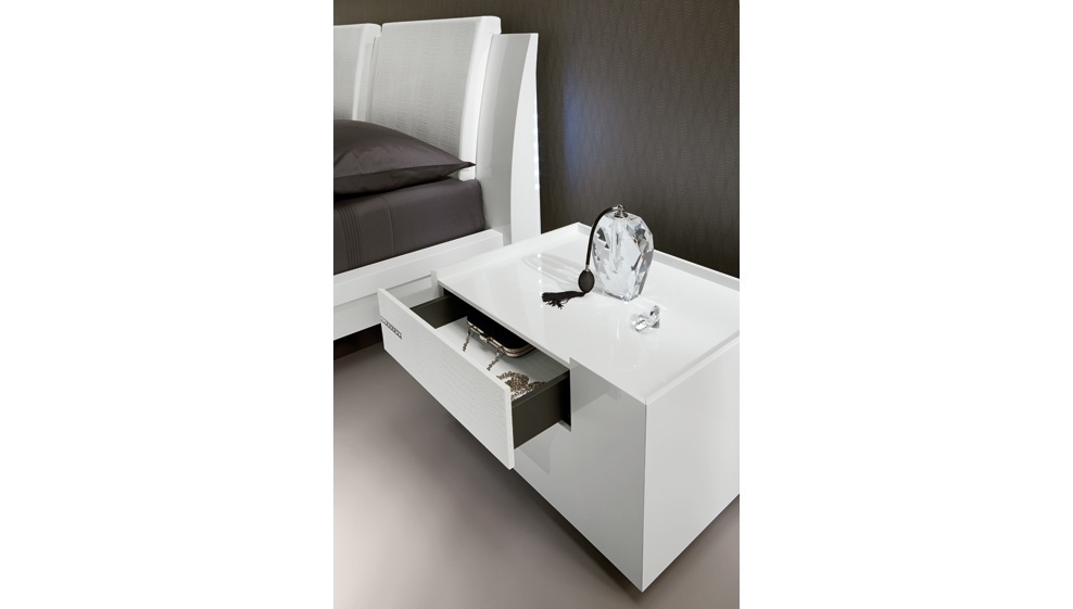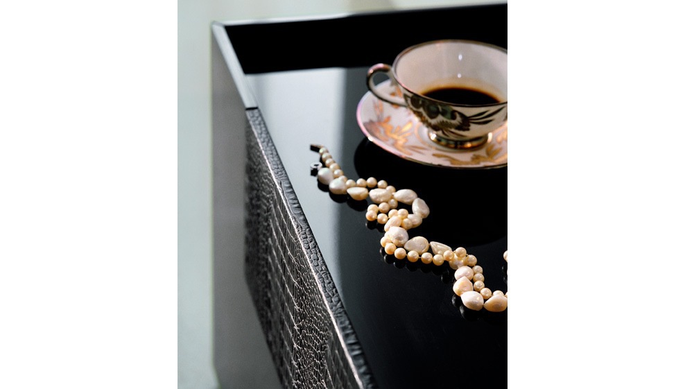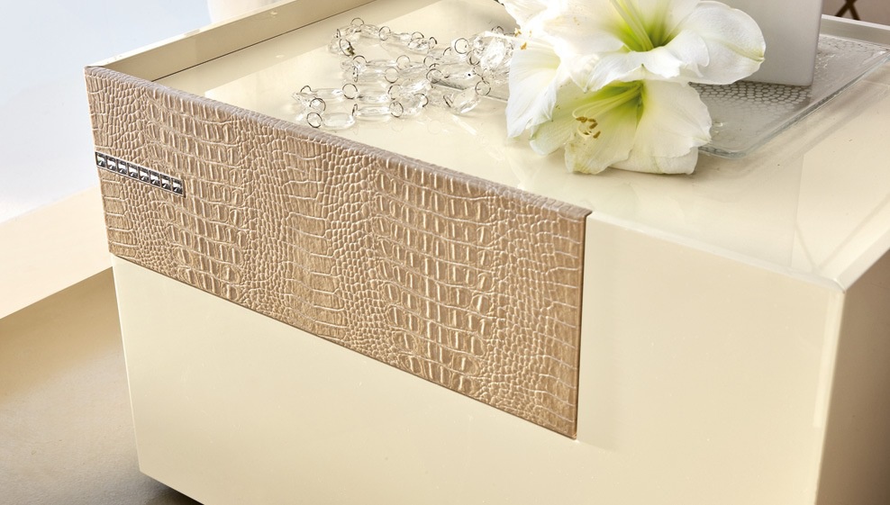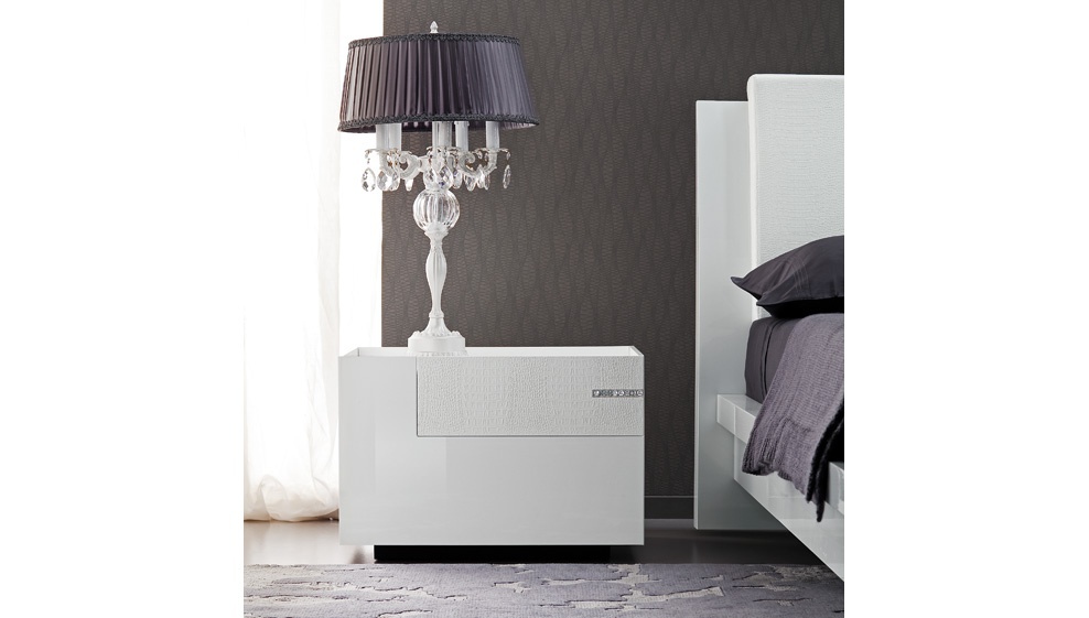 Diamond bedside table, a collection of Luxury, Italian furniture manufacturer Rossetto Armobil. Original performance front of the cabinets, in which the possible combination of matte lacquer with faux leather embossed crocodile. Top gloss varnish. Other finish options. The decoration model is a decorative inset STRASS® Swarovski®. The lack of fittings and handles makes the piece of furniture is concise, which is very consistent with modern style