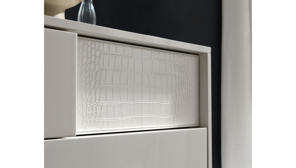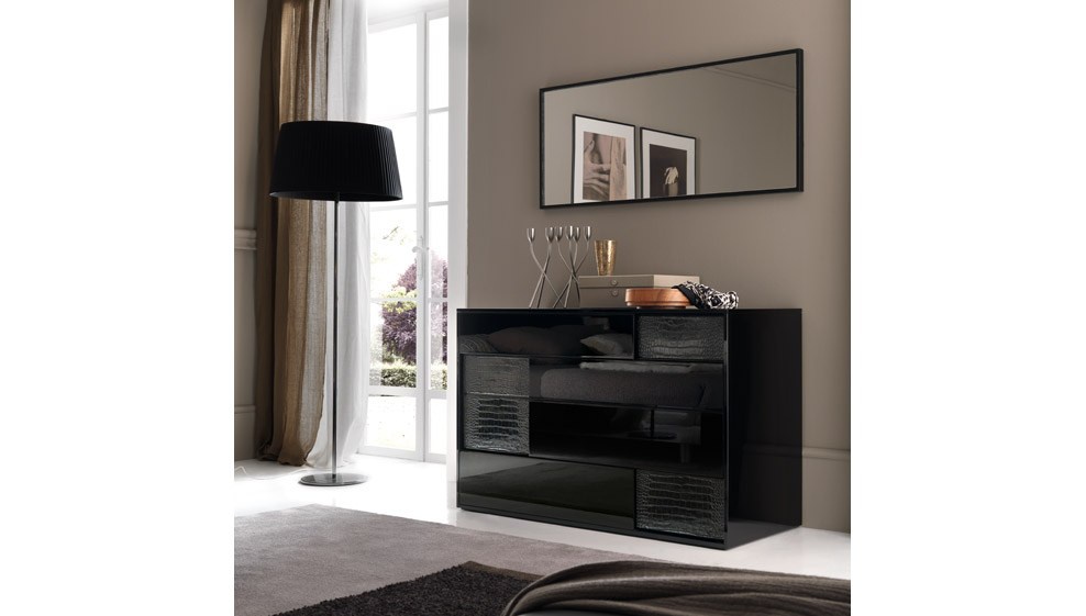The Nightfly dresser, a collection of Luxury, Italian furniture manufacturer Rossetto Armobil. Original performance front of the chest, in which the possible combination of glossy ebony wood veneer or lacquered finish with faux leather embossed crocodile. Upon request, the manufacturer offers a internal finish of the drawers - faux leather. The lack of fittings and handles makes the piece of furniture is elegant and concise, which is very consistent with modern style.