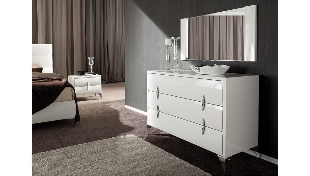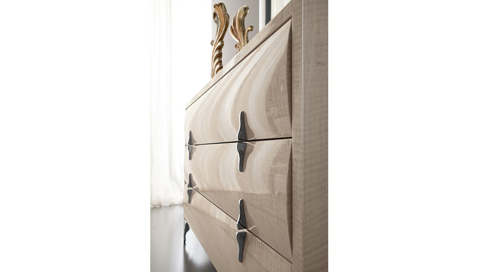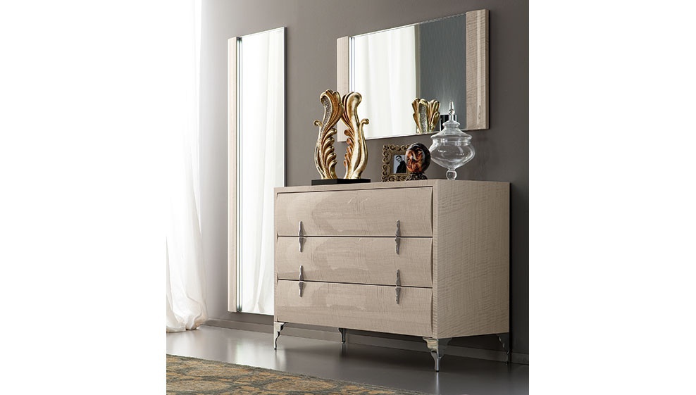 Dresser Dune, a collection of Luxury, Italian furniture manufacturer Rossetto Armobil. Finish a variety of models , from the lacquer processing to veneer glossy veneer. Fittings and legs are in the style of art Deco chromed metal. There are other finish options, on the number of items. Rectangular roomy drawers make it very functional and practical.