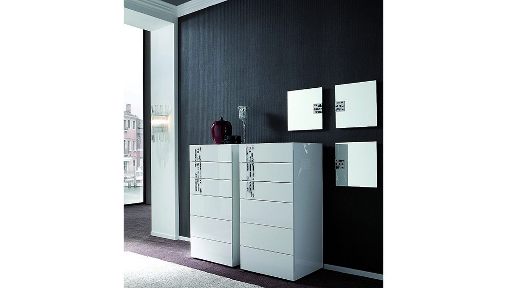 The Murano chest of drawers, Luxury collection, the Italian furniture manufacturer Rossetto Armobil. Rectangular roomy drawers make it very functional and practical. The decoration of the chest of drawers is made from Murano glass. The manufacturer offers two options of drawers - tall narrow wide and low. There are various options for finishing, according to the catalogue of the manufacturer. The model is made in a modern style