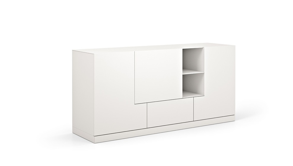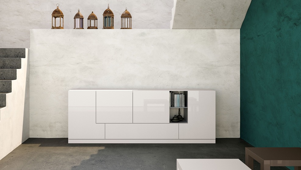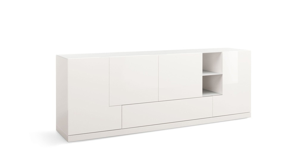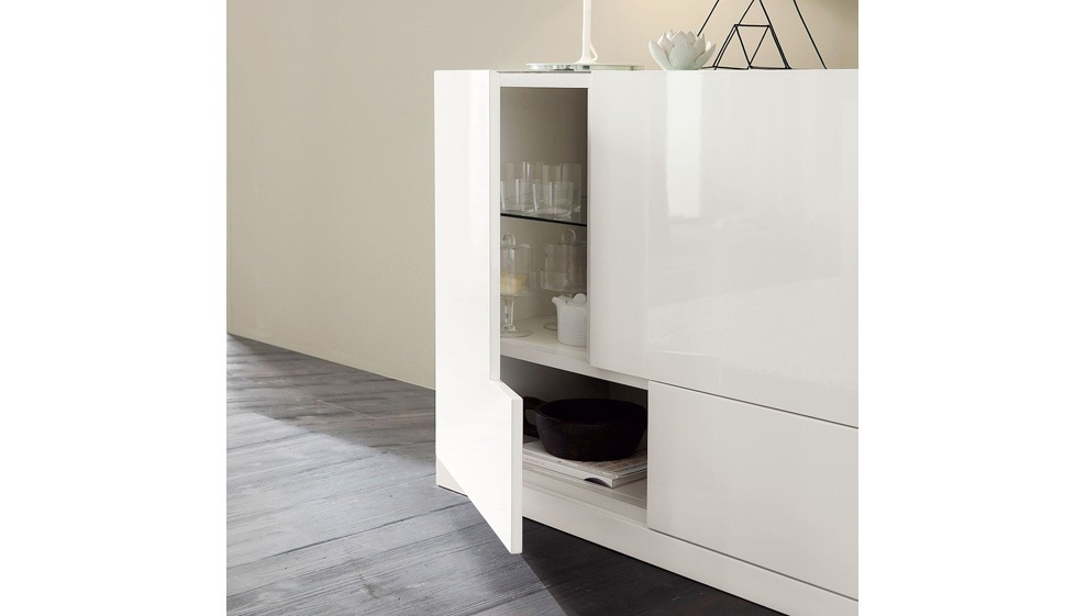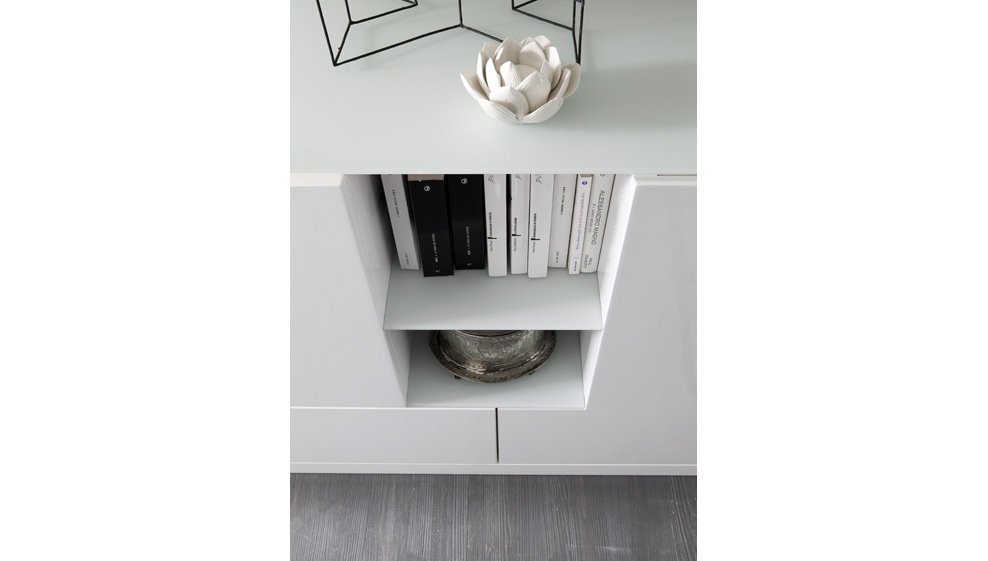 TV stand Alma, presented by Italian furniture manufacturer Rossetto Armobil. The original model is very functional. The Cabinet has several roomy compartments with easy opening system. The lack of visible hardware and an open Central compartment with glass shelf, give the design lightness and elegant look. Top made of tempered white glass. There are various finish options. Win-win option for living room in modern style