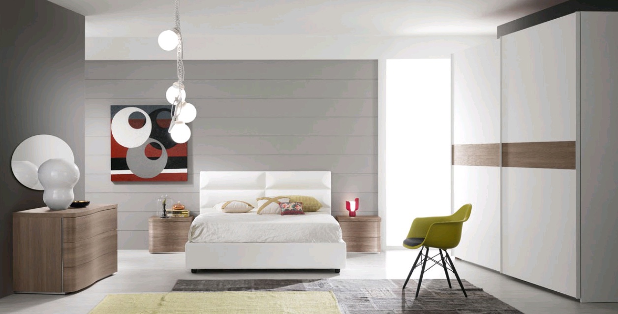 Model in a modern style and includes a wardrobe Mix, bed c Delta upholstered headboard, two bedside tables, a chest of drawers c shaped facades Round and oval mirror Ios. The furniture is made of MDF in veneer and lacquer finishes from the range. The combination of finishes and colors can be chosen from manufacturer's catalogue. Bed with leather upholstery can be with lifting mechanism. Internal filling Cabinet at the request of the Buyer.