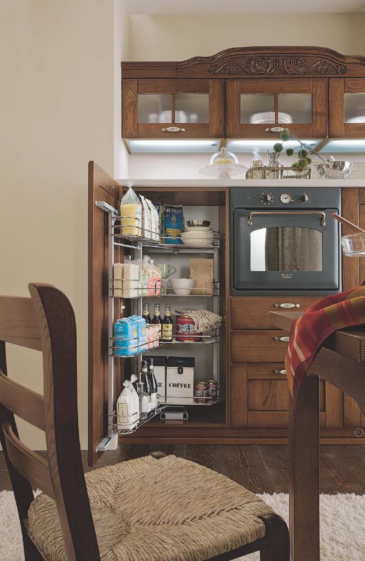 Kitchen Signoressa Classica comp.8 from the Italian manufacturer Ar-Tre. Structure made of water-repellent wood. The facades from the array of chestnut in the finishing of walnut, glass stained doors with frosted glass, handles made of bronze and ceramics. The table-top working area is made of artificial stone, cooking area made of ceramic tiles. Colors to choose from manufacturer's catalogue. Built-in appliances. The combination of elegant design and carefully selected materials allow us to create solutions that combine aesthetics and functionality. A classic solution for Your kitchen.