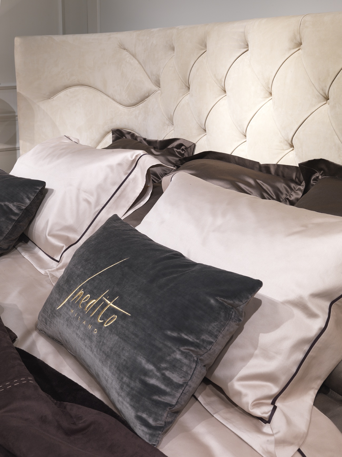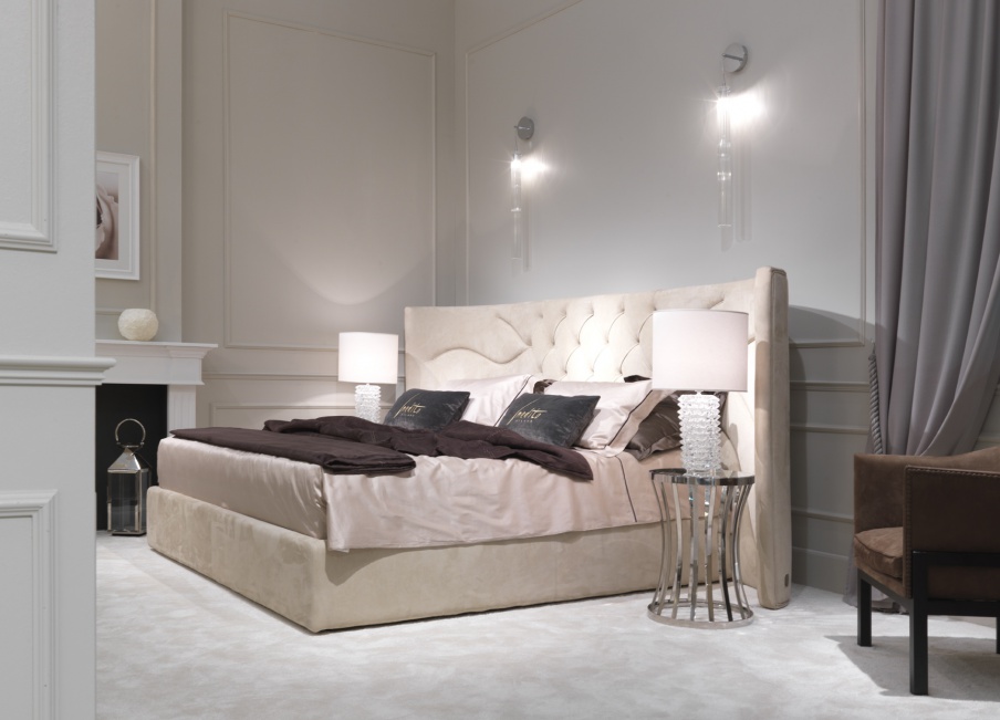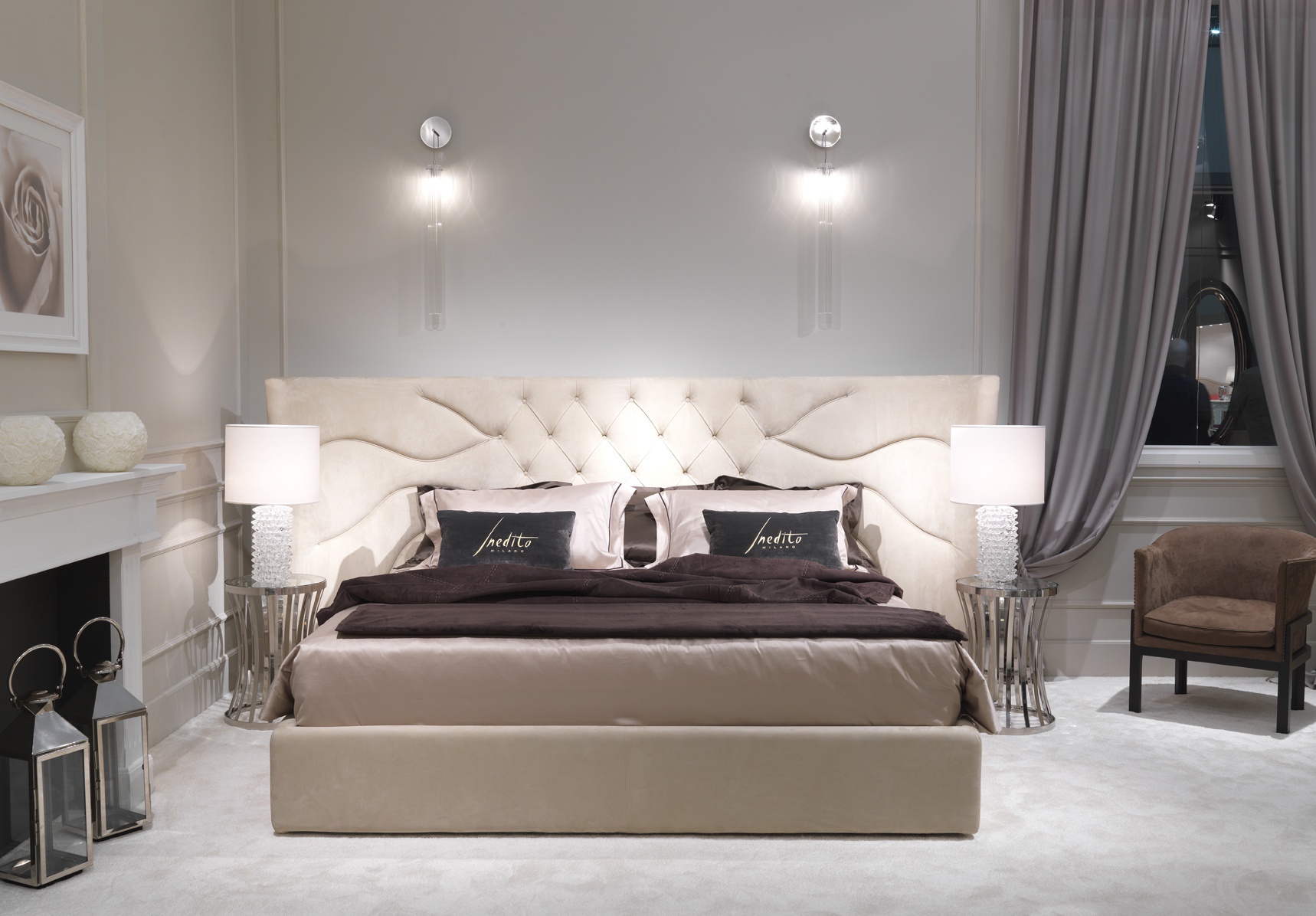 Double bed Desdemona from the Italian manufacturer IneditoMilano. Supporting structure made of metal and wood. Filling: polyurethane foam covered with protective fabric duplicated. The head semicircular shape, decorated with stitch-Capito. Upholstery in fabric or leather to choose from a range of the factory. Optional bed comes with a slatted grille, orthopedic panel with padding or the container with the rack bars. The bed Desdemona will certainly occupy a Central place in your bedroom in the style of art Deco or the glamour.