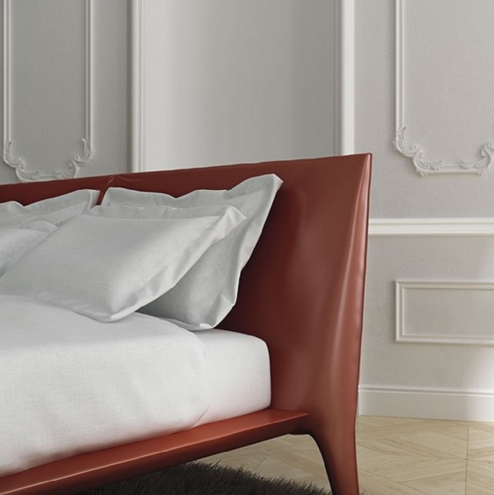 The double bed is Lucrezia from the Italian manufacturer IneditoMilano. Supporting structure made of metal. Upholstery leather with a natural surface or of leather with a polyurethane coating (cuoietto), colors to choose from a range of companies. Optional bed comes with a slatted grille or orthopedic panel with padding. The perfect solution for your modern bedroom.