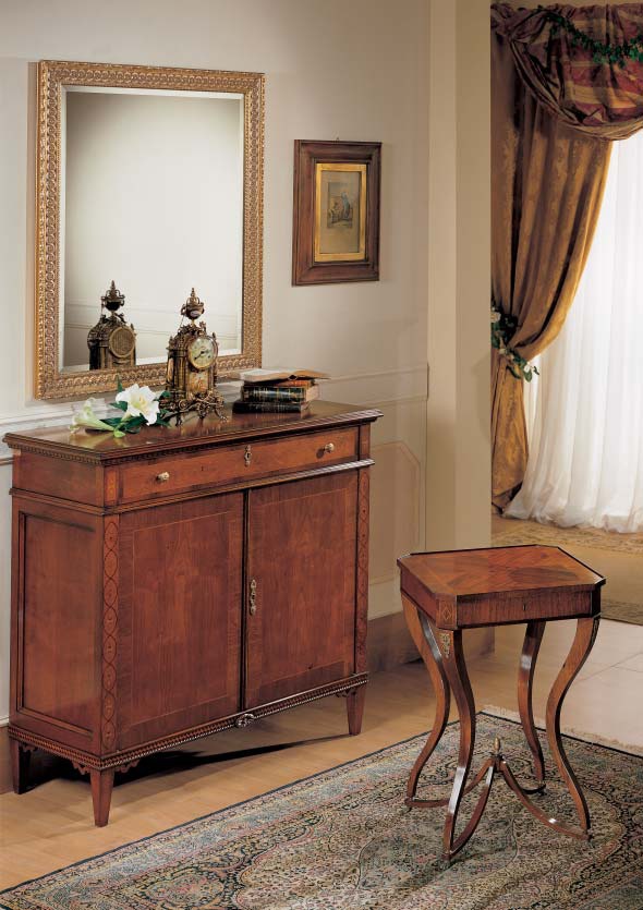 Ginevra sofa set from the Italian manufacturer Arve Style. This set includes: sideboard with 2 doors, a wall mirror in a carved gilt frame, a small window with sash and glass shelves. Headsets can be augmented 2nd pridivannogo tables, Creat - with a square top, Astro - round. All products are made of solid wood. The top veneer. Accessories exquisite metal. Acts as the main decor inlay, some have gilding and carved elements . Set in classic style, filled with charm and sophistication living room, perfectly fit into the hall.