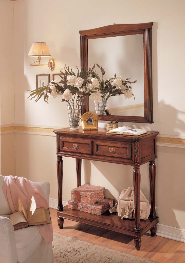 Melania sofa set from the Italian manufacturer Arve Style. Set consists of a console and wall mirror. The console has 2 drawers with fittings and shelf. Products made from solid wood, the finish veneer walnut or cherry to choose from. The surface profiled, lacquered. The decor speaks of fine carving handmade. Set perfectly match classical and modern interior.