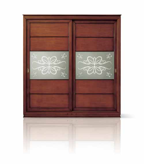 Wardrobe Sogni from the Italian manufacturer Arve Style. There are 2 variants of this model, the difference in size. The solid wood used to create the housing, the base; walnut veneer as decoration. The model is available in white glossy lacquer. Domestic content includes drawers, rod. Wardrobe with 2 sliding doors, sleek metal hardware. Adorned with profiles and moldings in the lacquer shade of mocha. The highlight of the product are inserts made of white frosted glass with a floral pattern that gives a minimalist design ease and sophistication. Wardrobe perfectly fit into a modern stylish bedroom.