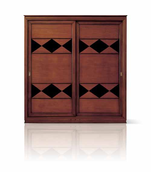 Wardrobe Sogni from the Italian manufacturer Arve Style. To choose from - 2 kinds of this model, the difference in width. The solid wood used as a housing base; walnut veneer as decoration. The inner content consists of drawers, rods. The oven is fitted with 2 sliding doors with simple metal hardware. Frame shaped, the facade is decorated with mouldings in lacquer mocha. The highlight of the product is diamond-shaped figure, it gives the piece a graphic quality and eclectic flavors. Wardrobe perfectly fit into a modern stylish bedroom.