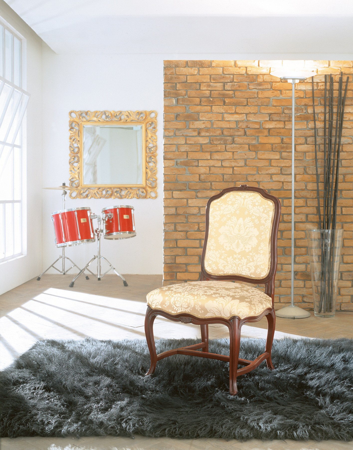 Original chair with upholstery of leather or textiles from the Italian manufacturer Selva. The frame is made of solid wood beech. A polyurethane filler. The model is perfect for the living room's classic style.
