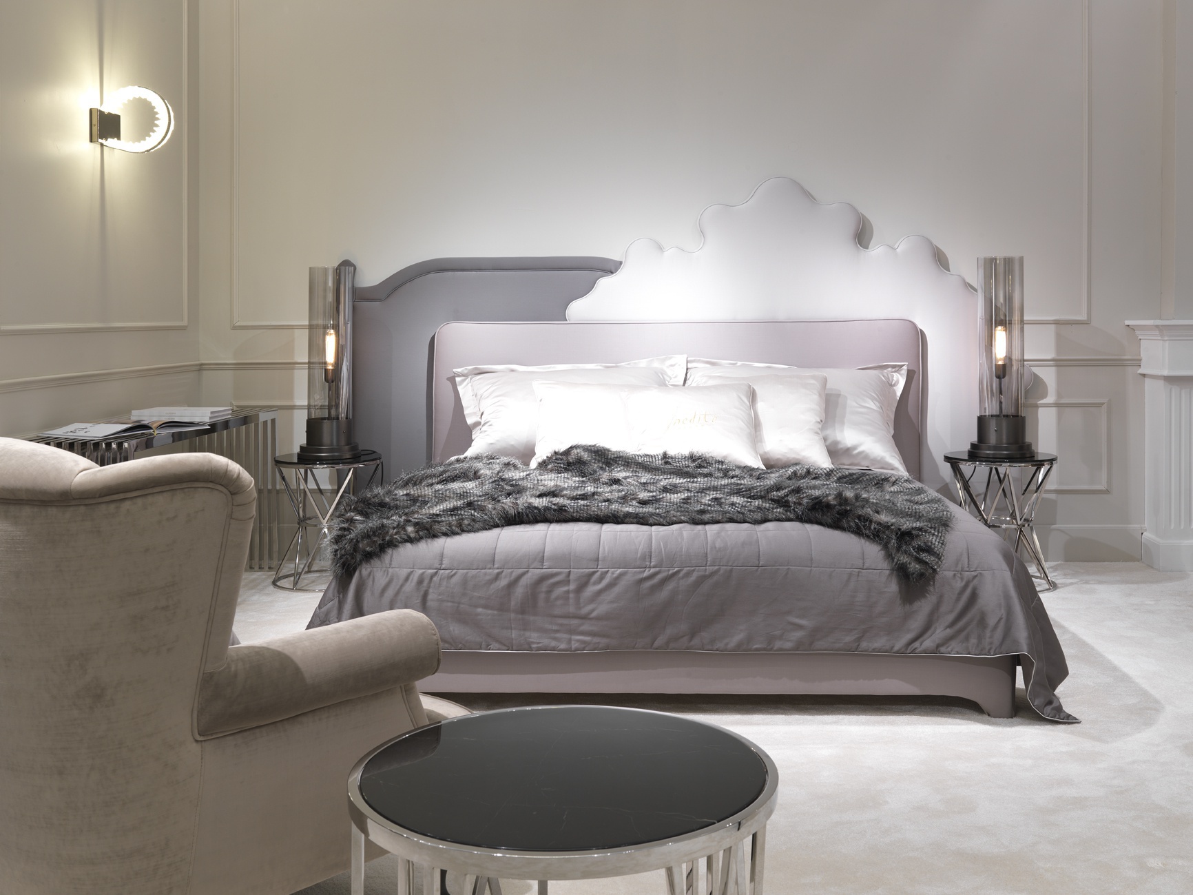 Double bed Bon Enfant from the Italian manufacturer IneditoMilano. The structure of the bed is made of solid wood and metal. Filling: polyurethane foam covered with protective fabric duplicated. The upholstery is available in fabric or genuine leather colors to choose from assortment. The bed comes with a slatted grille or orthopedic panel with padding. For your convenience, the factory provides several options of sizes. The head of the bed harmoniously combines direct geometrical shape and relief lines. Bed Bon Enfant will certainly become a decoration for your bedroom.