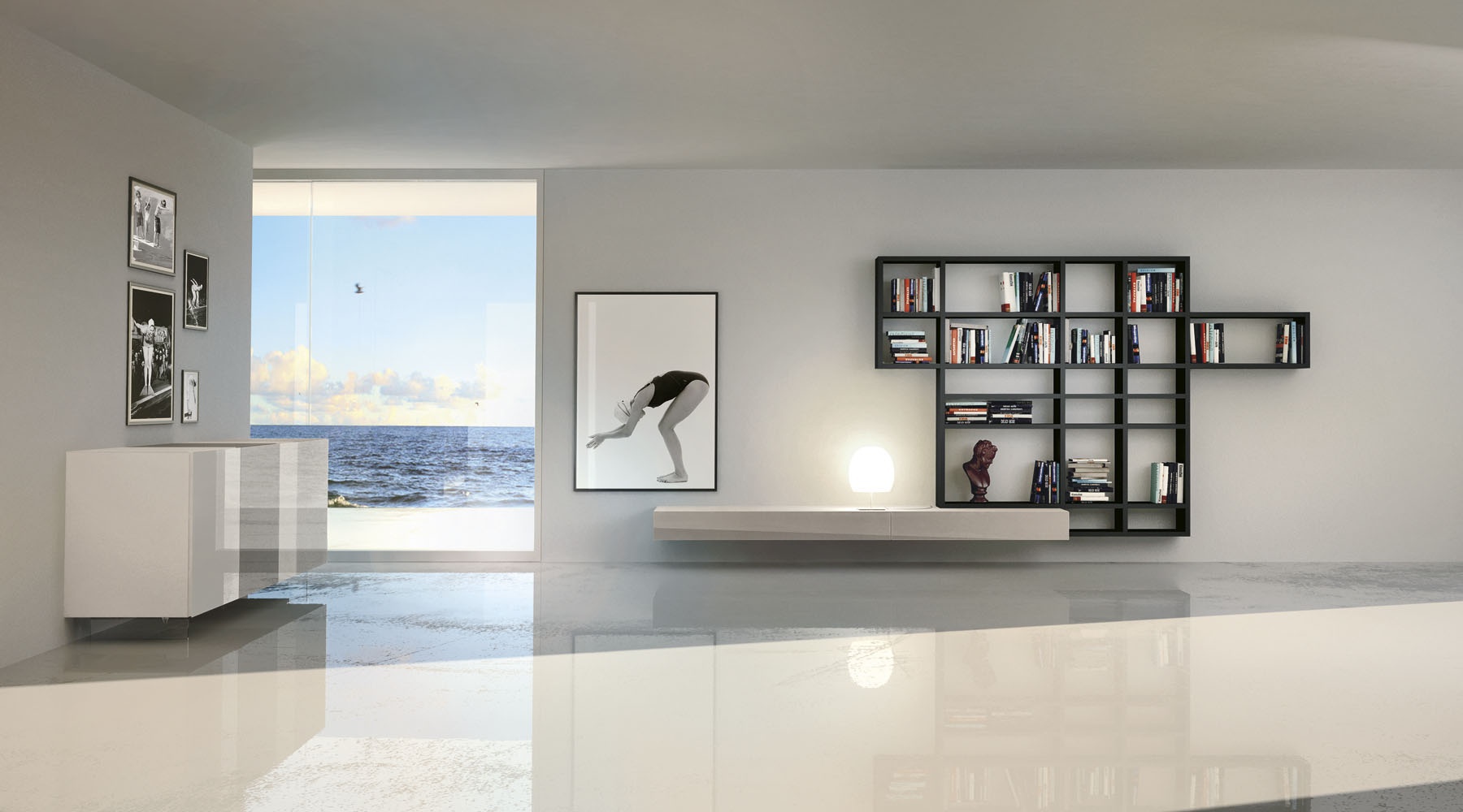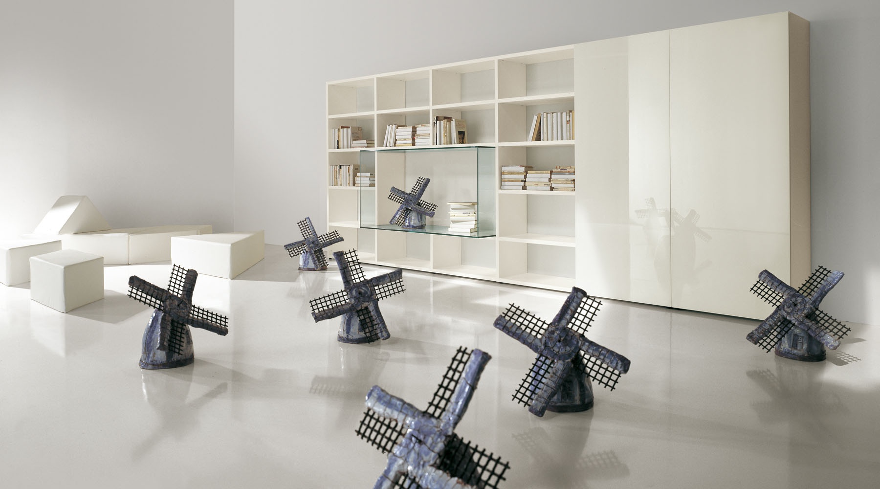 Bookcase 36e8 from Italian manufacturer Lago. The frame is made of MDF and glass. A good choice for living, office or library design. The model is available in different sizes and configurations. The base is a square module, providing a method of storage and design wall. Offering countless design options focused on storage. Colors range from the manufacturer.
