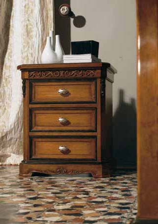 Villa stand from Italian manufacturer Arve Style. The bedside table, on the base, fitted 3 drawers. Frame, base made from solid wood. Walnut is used as decoration. Metal hardware, in gold. Exquisite decor presents a hand carved black lacquer. The product is a classic, perfectly complement the bed from the same collection.